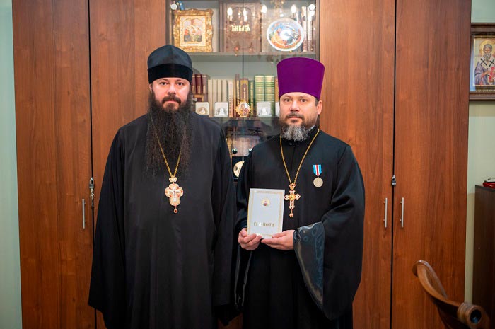 At the end of the meeting, in recognition of his labors for the benefit of the Orthodox Church of Kazakhstan and in connection with his 45th birthday, the secretary of the Kostanay Diocese presented the Medal of the Holy Confessor Nicholas, Metropolitan of Almaty and Kazakhstan, to Archpriest Alexiy Mostovshchikov.