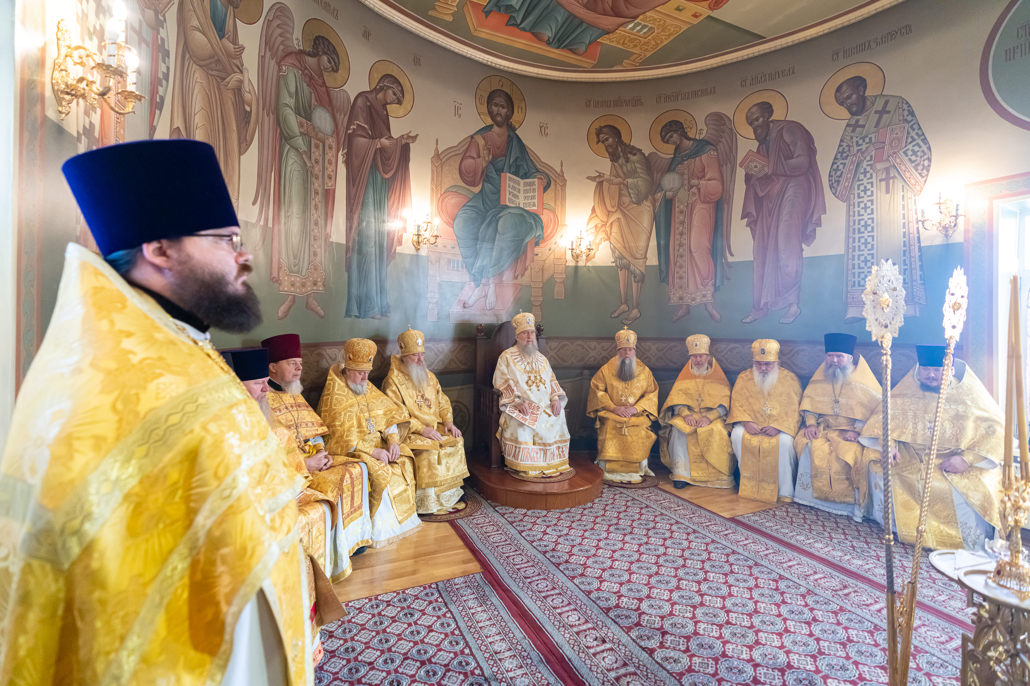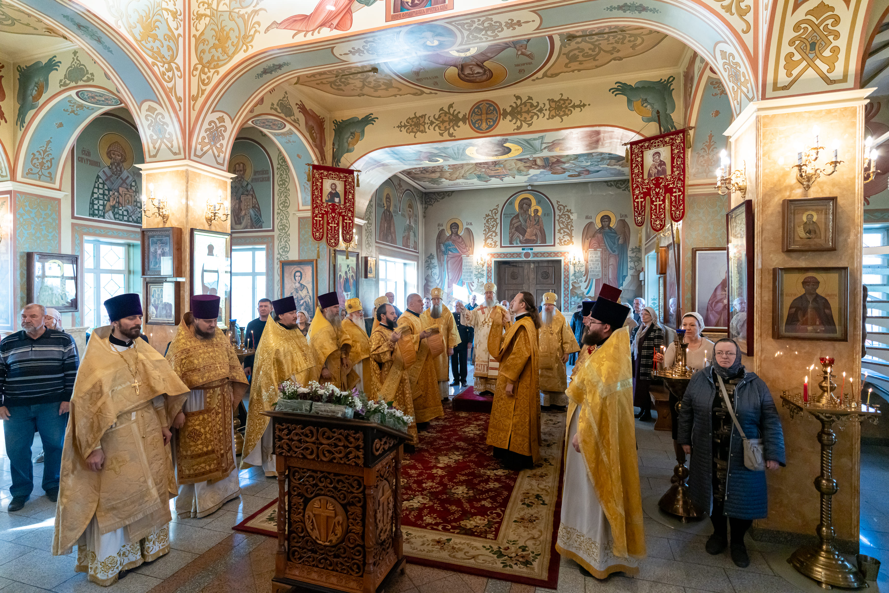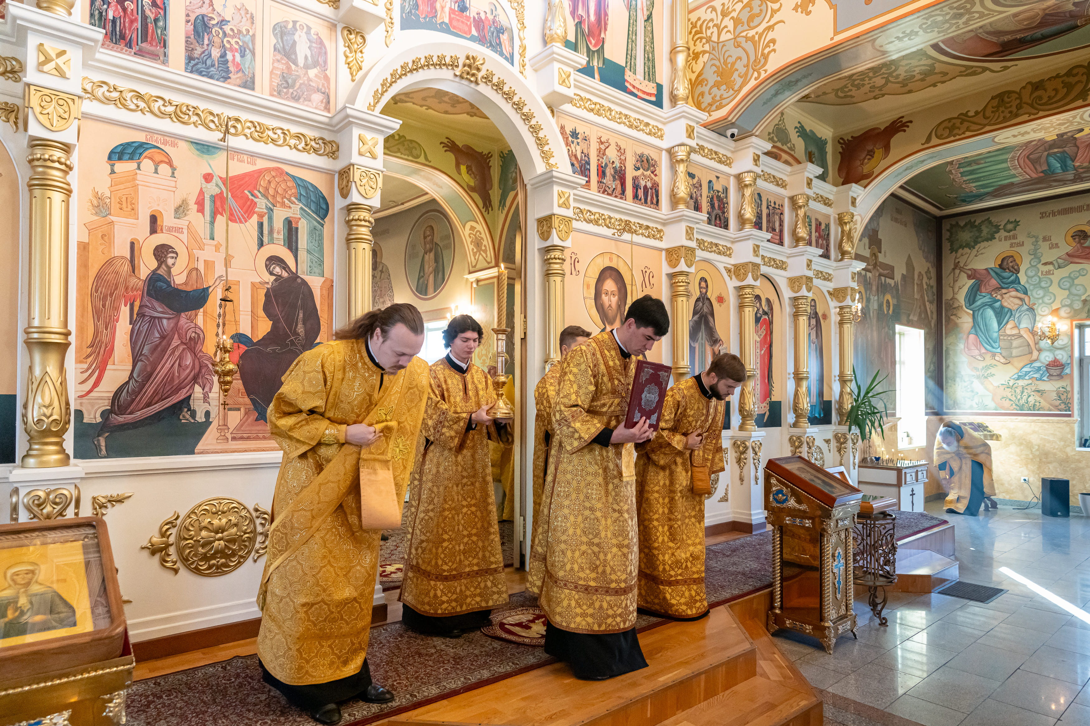 Concelebrating with the Head of the Metropolis were: the Vicar of the Astana Diocese, Bishop Klavdian of Taldykorgan, Bishop Khrisanf of Chimkent and Turkestan; the dean of the churches of Almaty, rector of St Nicholas Cathedral, Archpriest Valery Zakharov; the rector of the Almaty church in honor of the Icon of the Mother of God “Joy of All Who Sorrow” Archpriest Evgeny Vorobyev, the rector of the St Paraskeva Church Archpriest Ioann Lopatin, Archimandrite Gavriil (Tutberidze), the rector of the Church of St John the Forerunner in the settlement of Guldala Archpriest Georgy Kharlov, the rector of St Alexei Church in the settlement of Baiterek Archpriest Anatoly Boyko, the head of the Metropolitan’s personal secretariat Hieromonk Prokhor (Endovitsky), the head of the administrative secretariat of the Head of the Metropolis Priest Georgy Sidorov, the rector of the St Alexander Nevsky Church in the village of Saimasai (Aleksandrovka) Priest Roman Klyuev, the sacristan of the Adriano–Natalievsky Church Priest Ioann Konoplev; Protodeacon Nikolay Grinkevich, the head of the Metropolitan’s protocol service Protodeacon Roman Golovin, Protodeacon Vladimir Syrovatsky, Deacon Daniil Pasyuk.