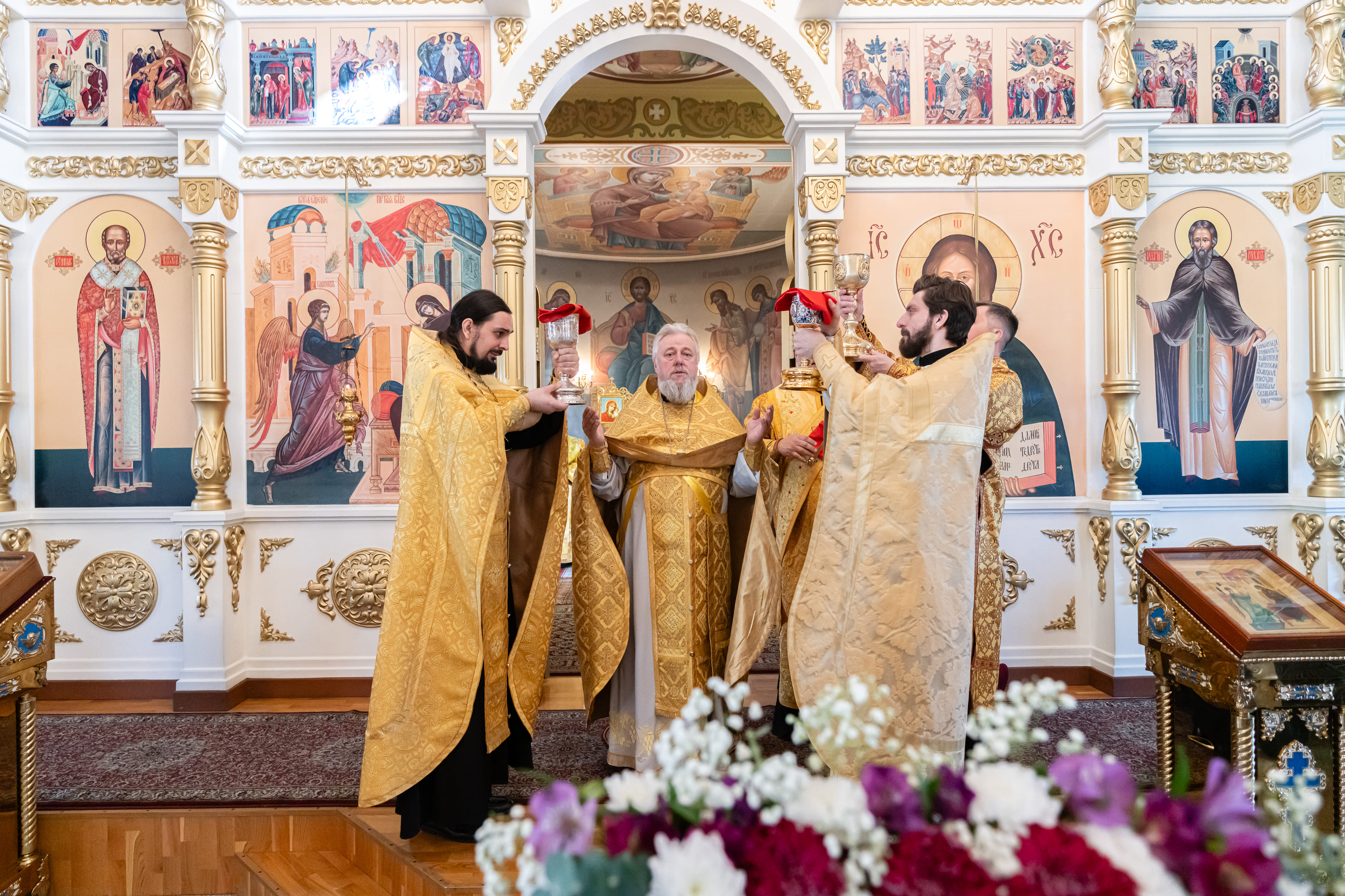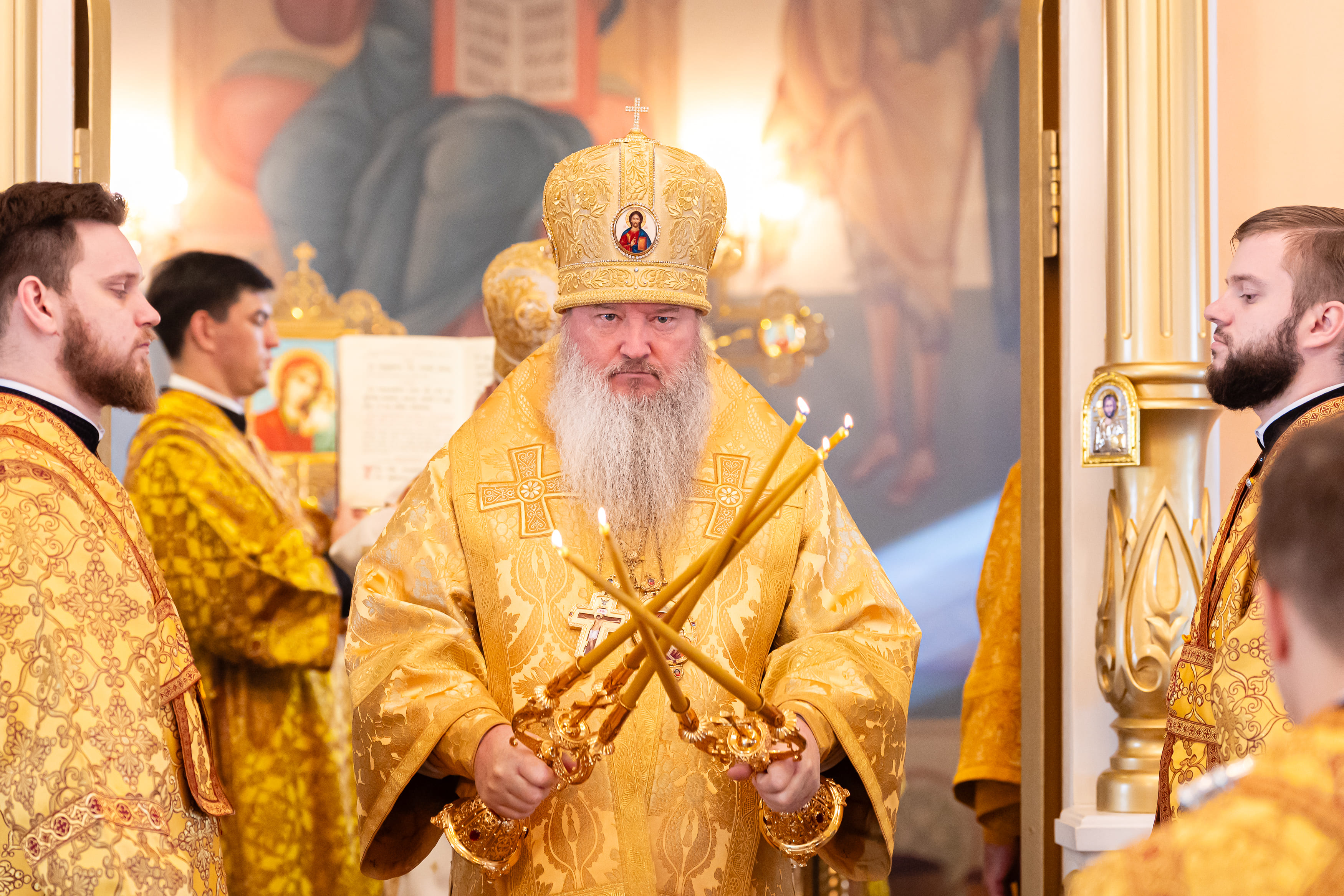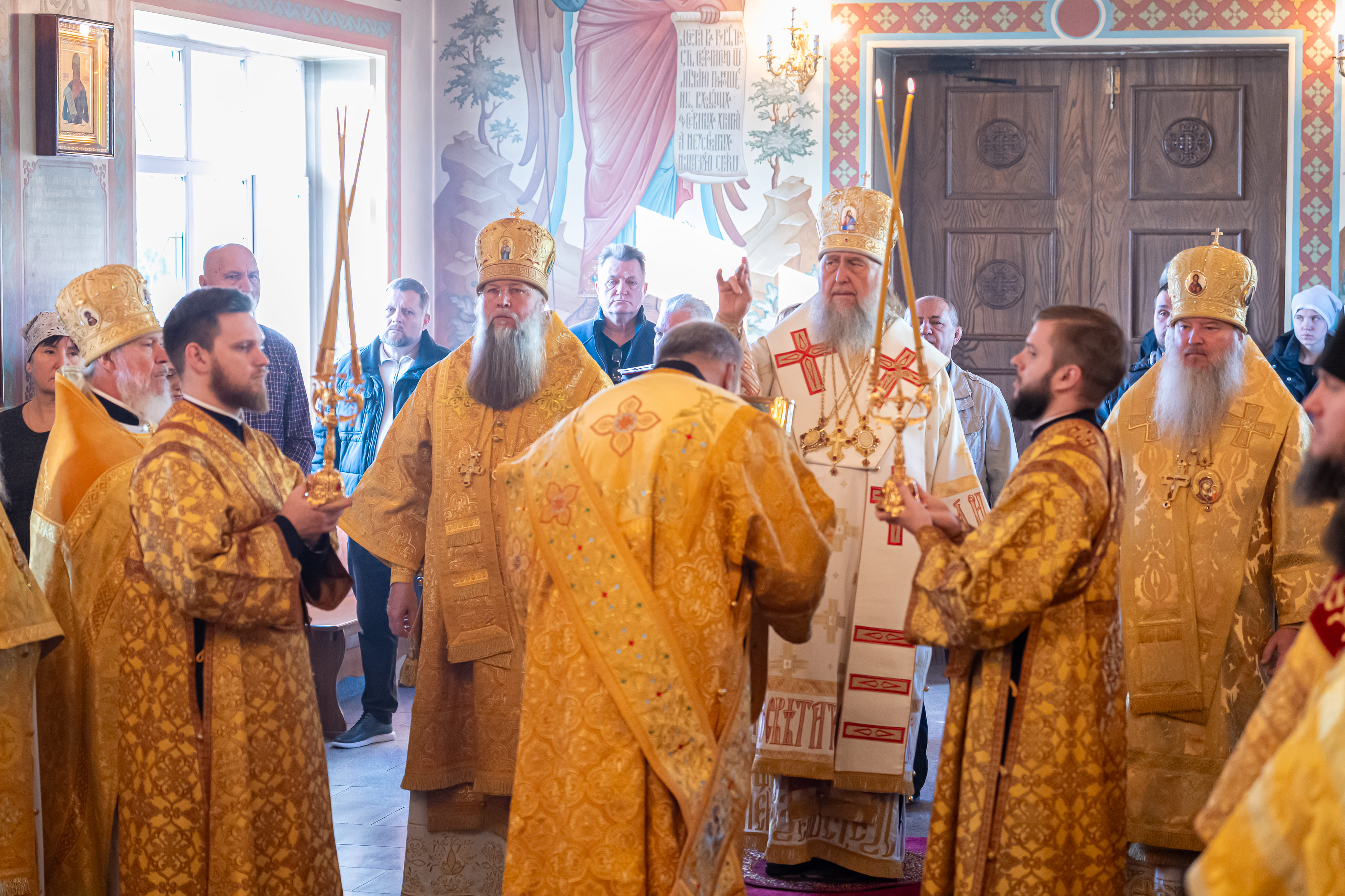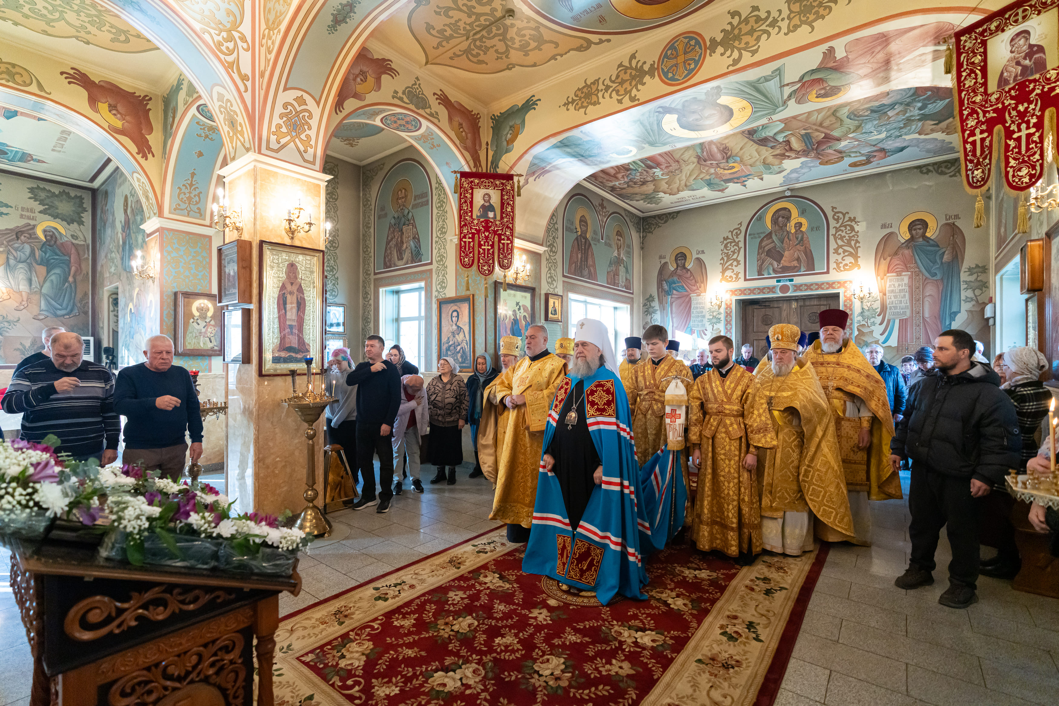 Concelebrating with the Head of the Metropolis were: the Vicar of the Astana Diocese, Bishop Klavdian of Taldykorgan, Bishop Khrisanf of Chimkent and Turkestan; the dean of the churches of Almaty, rector of St Nicholas Cathedral, Archpriest Valery Zakharov; the rector of the Almaty church in honor of the Icon of the Mother of God “Joy of All Who Sorrow” Archpriest Evgeny Vorobyev, the rector of the St Paraskeva Church Archpriest Ioann Lopatin, Archimandrite Gavriil (Tutberidze), the rector of the Church of St John the Forerunner in the settlement of Guldala Archpriest Georgy Kharlov, the rector of St Alexei Church in the settlement of Baiterek Archpriest Anatoly Boyko, the head of the Metropolitan’s personal secretariat Hieromonk Prokhor (Endovitsky), the head of the administrative secretariat of the Head of the Metropolis Priest Georgy Sidorov, the rector of the St Alexander Nevsky Church in the village of Saimasai (Aleksandrovka) Priest Roman Klyuev, the sacristan of the Adriano–Natalievsky Church Priest Ioann Konoplev; Protodeacon Nikolay Grinkevich, the head of the Metropolitan’s protocol service Protodeacon Roman Golovin, Protodeacon Vladimir Syrovatsky, Deacon Daniil Pasyuk.