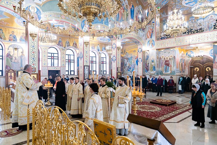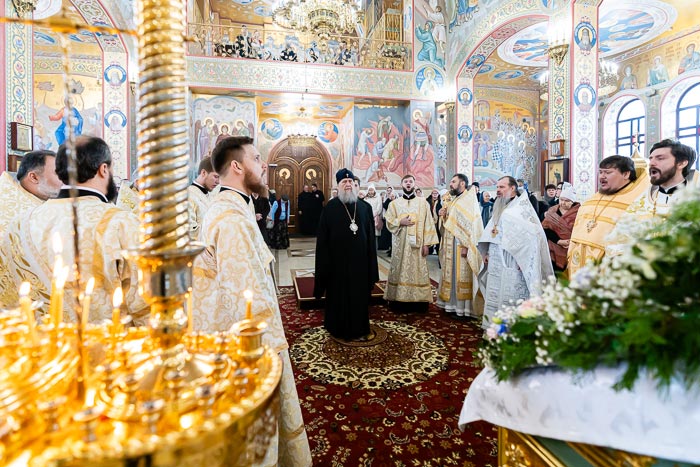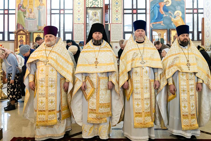 Concelebrating with the Head of the Metropolitan District were: the rector of the Church of Saints Peter and Paul, Archpriest Vladimir Shklyar, the keyholder of the Ascension Cathedral, Head of the Department of Public Relations of the Metropolitan District, Archpriest Alexander Suvorov; the keyholder of the Church of Saints Peter and Paul, Archpriest Kirill Shklyar, the dean of the churches of the central district of the Orel Diocese, Archpriest Vasily Ivanov (Orel Metropolis – Russia), the dean of the Ili Church District, Archpriest Alexander Zyryanov, the rector of the Church of Saints Cosmas and Damian, Priest Andrey Shklyar, the head of the personal secretariat of the metropolitan, Hieromonk Prochor (Endovitsky), the head of the administrative secretariat of the Head of the Metropolitan District, Priest Georgy Sidorov, cleric of the Church of Saints Peter and Paul, Priest Maksim Lysenko, the keyholder of the Kazan Cathedral of Almaty, Priest Georgy Rublinsky;