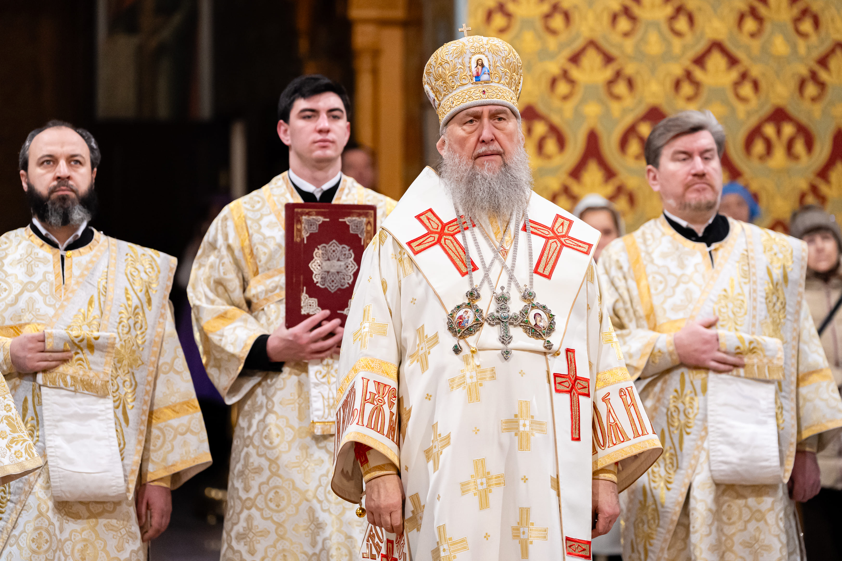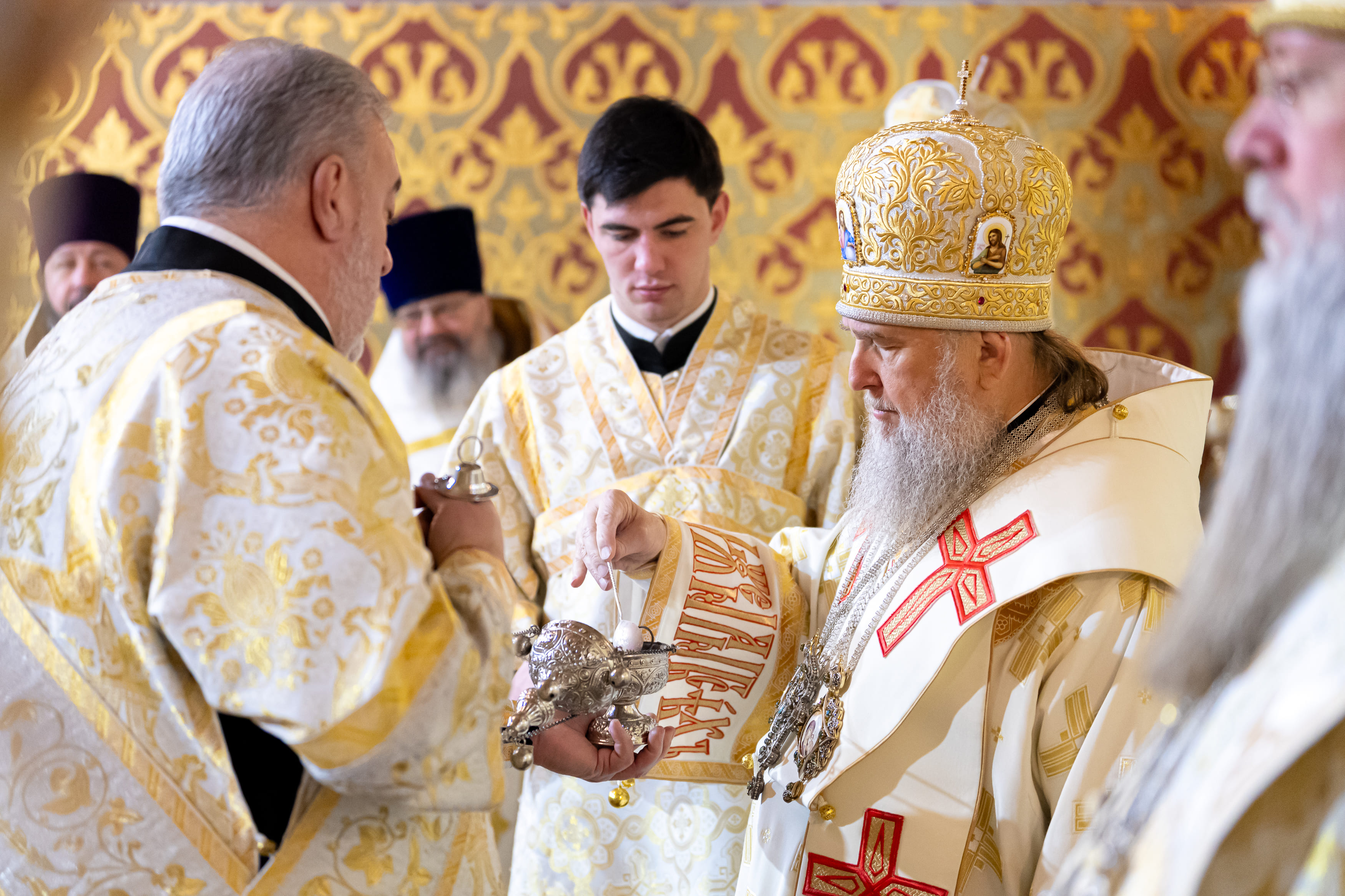 Concelebrating with the Head of the Orthodox Church of Kazakhstan were: Vicar Bishops of the Astana Diocese – Bishop Klavdian of Taldykorgan and Bishop Veniamin of Talgar; Spiritual father of the Almaty Diocese Archimandrite Ioann (Sazonov), Keykeeper of the Christ Nativity Cathedral Protopriest Alexander Gaichenya, Rector of the Church of St. Paraskeva and the Church of St. Alexander Nevsky Protopriest Ioann Lopatin, Rector of the Theophany Church Protopriest Valery Shavrin, Keykeeper of the Church of Saints Peter and Paul Protopriest Kirill Shklyar, Protopriest Alexander Sokolov, Head of the Metropolitan’s personal secretariat Hieromonk Prokhor (Endovitsky), Head of the administrative secretariat of the Metropolitan District Priest Georgy Sidorov, Vice-rector for Educational Work of the Almaty Theological Seminary Priest Ioann Livinsky, Vice-rector for Academic Affairs Priest Pyotr Bakhtiyarov, Head of the correspondence department of the Seminary Priest Daniil Bobylev, Keykeeper of the Adriano–Nataliev Church Priest Ioann Konoplev, Keykeeper of the Kazan Cathedral in Almaty Priest Georgy Rublinsky; Protodeacon Nikolai Grinkevich, Chief of Protocol of the Metropolitan Protodeacon Roman Golovin, Protodeacon Vladimir Syrovatsky, Clergy of the Sophia Cathedral and city clergy.