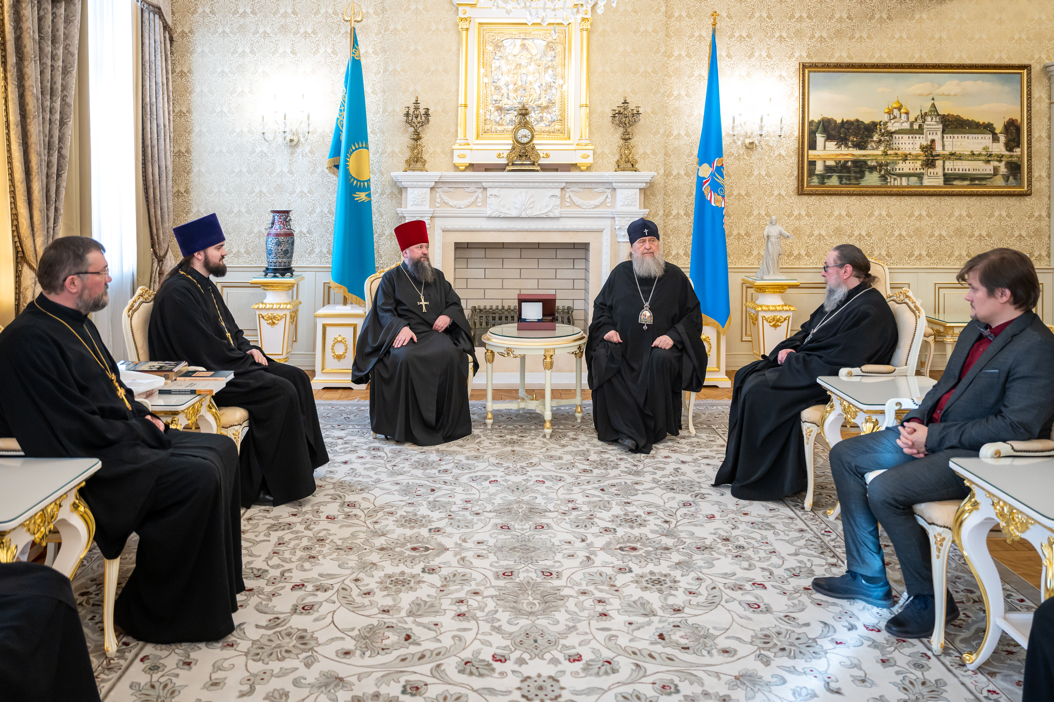 25 November 2025. Almaty. In the Fireplace Hall of the spiritual, cultural and administrative center of the Kazakhstan Metropolitan District named in honor of Metropolitan Joseph (Chernov), a working meeting was held between Metropolitan Alexander of Astana and Kazakhstan and the participants of the Sophonius Readings who arrived from theological schools of the Russian Orthodox Church.