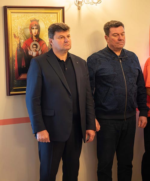 Қасиетті еиу рәсіміне қатысқандар: Рудный қаласының әкімі В.Н. Ионенко және шіркеу қайырымдылары.