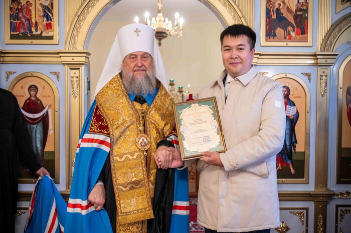 Шіркеуді салу мен көріктендірудегі еңбектерін бағалап, архипастор жанашырларды Қазақстан Митрополиттік округінің жоғары наградаларымен марапаттады.