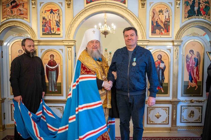 Митрополит Покровский шіркеуіне сыйлық ретінде қасиетті белгішелерді: «Мәсіх – Ұлы Архиерей» және Аспан патшайымының Феодоровский белгішесін ұсынды.