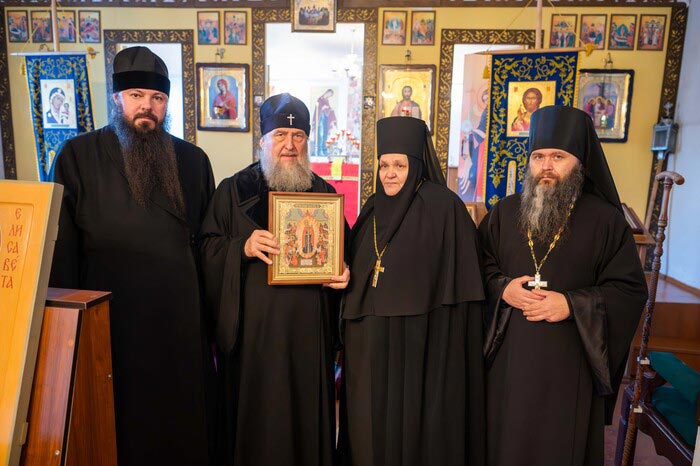 Келгеннен кейін архипастор діни қызметкерлермен бірге Петропавл шіркеуіне барып, ең қасиетті Құдай Анасының Иверский иконасына мадақтаулар айтты, содан кейін ол монастырь басшылары мен тұрғындарымен сөйлесті. Билеуші митрополит игумения Никаны игумен дәрежесіне көтерілуінің мерейтойымен шын жүректен құттықтап, дұғалық естелік ретінде және оның жұмысына бата ретінде ең қасиетті Құдай Анасының «Қайғырғандарға қуаныш» белгішесін сыйға тартты.