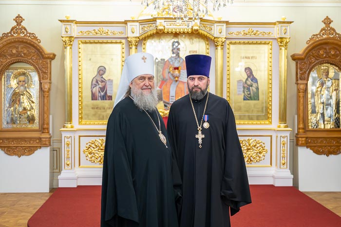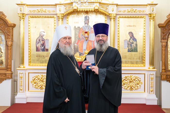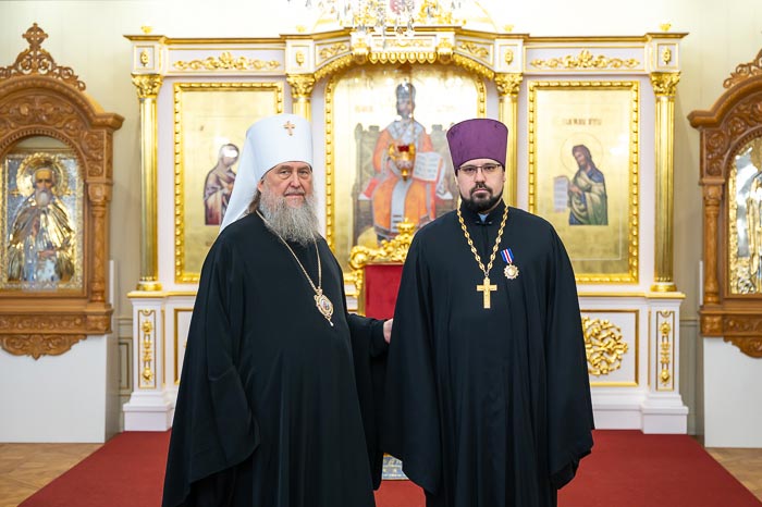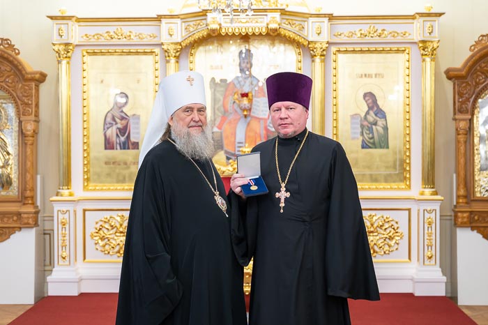 Марапаттаушылардың атынан протоиерей Александр Суворов Митрополиттік округ басшысына сөз сөйледі.