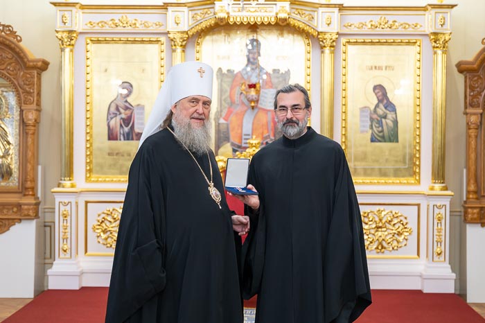 15 желтоқсан 2025 жыл. Алматы. Митрополит Иосиф (Чернов) атындағы Қазақстан Митрополиттік округінің рухани-мәдени орталығының тақ залында Алматы православиелік рухани семинариясының әкімшілігіне, оқытушылар құрамы мен қызметкерлеріне шіркеу марапаттары табыс етілді.