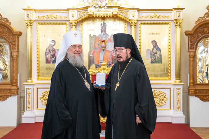 Митрополит Александр Алматы православиелік рухани семинариясының әкімшілігі мен қызметкерлеріне шіркеу марапаттарын табыс етті