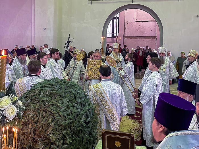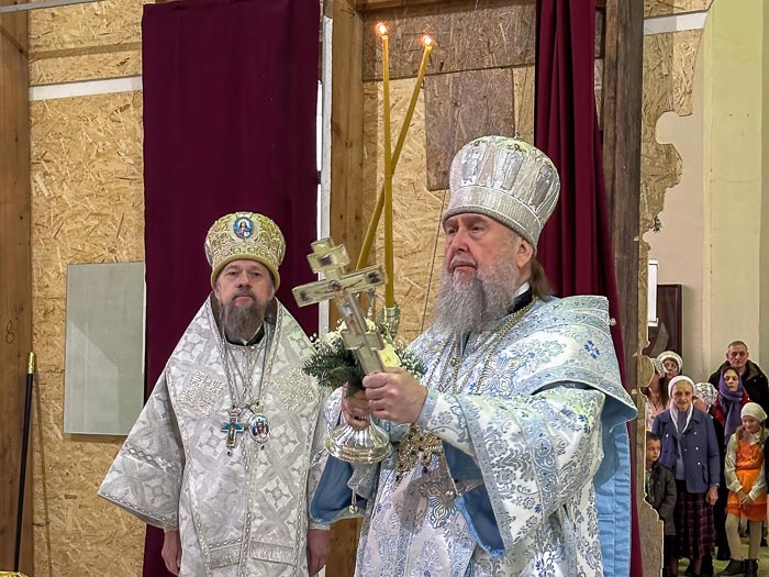 Құлшылық басталар алдында сенушілердің дұғалық тағзымы мен рухани нығаюы үшін храмға Афон тауындағы қасиетті апостол Павел монастырынан әкелінген волхвтардың адал Сыйларының көшірмесі салынған кеме жеткізілді.