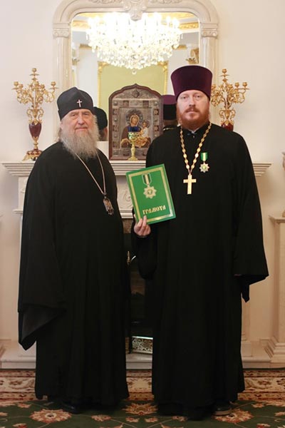 «Ынталы Қызмет Үшiн» орденімен марапатталғандар: Успен кафедралдық соборының кілтшісі иеромонах Димитрий (Байдек), Константино-Еленинский соборының кілтшісі протоиерей Сергий Калиев, құрметті өкілдің көмекшісі иерей Сергий Дианов, диакон Николай Горячев және елордадағы Успен кафедралдық соборы хорының регенті Ольга Варенцова.