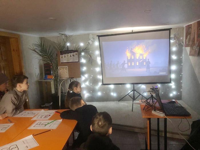Әрі қарай диакон Иоанн Федоров туралы танымдық фильм көрсетіліп, жексенбілік мектеп оқушылары Русьтегі кітап басу ісінің дамуы жайлы мәлімет алды.