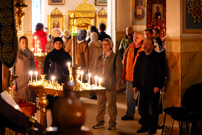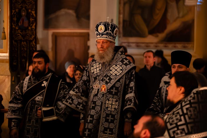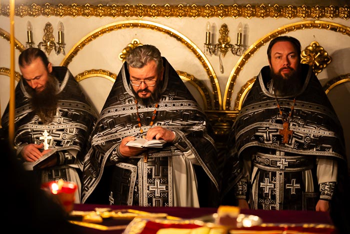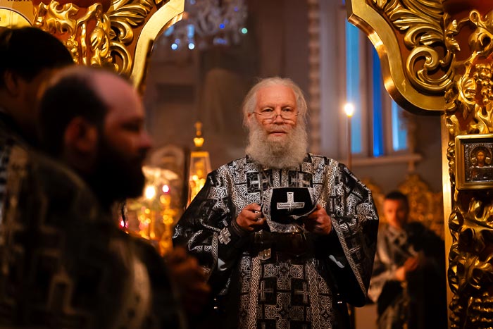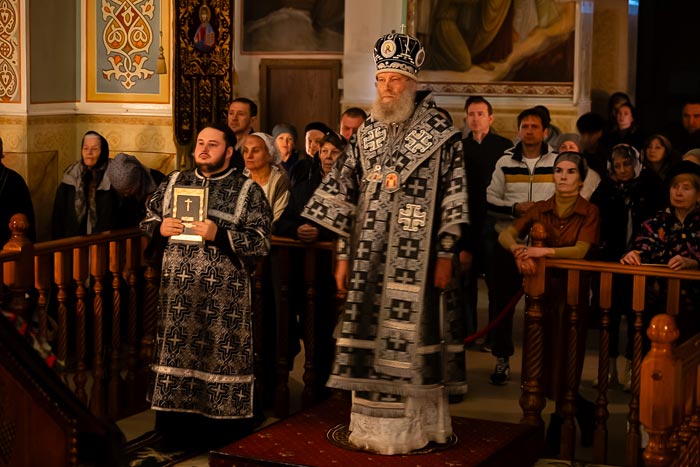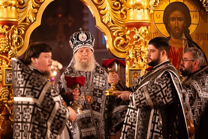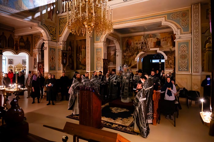 Астана және Қазақстан митрополиті Александрдың батасымен Астана епархиясының викарийі, Талғар епископы Вениамин Алматы қаласындағы Никольский соборында Алдын ала қасиеттелген Сыйлар Литургиясын түнгі уақытта өткізді.