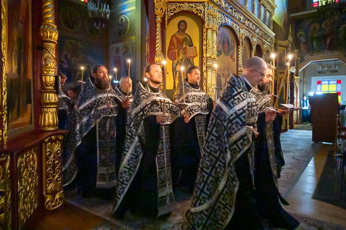 Таңғы құлшылықтың басында «Егда славнии ученицы» тропары орындалғанда, дін қызметкерлері Қасиетті Інжілді алтарьдан алып шығып, оны шіркеудің ортасына орнатылған Құтқарушының айқышқа шегелену бейнесінің алдына, Ең Қасиетті Қгдай Анасы мен апостол Иоанн Богослов бейнелерімен бірге орналастырды.