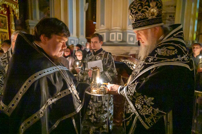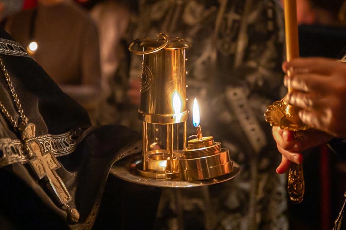 10-шы Інжіл оқылғаннан кейін, Иса Мәсіхтің денесін Кресттен түсіру және оны Аримафеялық Иосифтің жерлеуі туралы баяндалған кезде, архипастырь мен дін қызметкерлері алтарьдан Жаратушының Қасиетті Қабірінің бір бөлігін алып шықты. Бұл қасиетті Иерусалимдегі Қасиетті Қабір шіркеуінің кілтшісі шейх Ваджих Нусейбе митрополит Александрдың өтінішімен және Иерусалим Патриархы Феофил III-тің батасымен қазақстандық православ христиандарға сыйға тартқан.