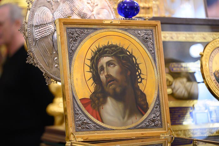 Римде Голгофа шегесінің 100 көшірмесі жасалған, олардың әрқайсысына осы ұлы қасиеттің бір бөлшегі салынған. Осындай шегелердің бірі митрополит Александрға сыйға берілген. Ұлы Інжілдік қасиеттер дұға ету үшін Кресттің жанында орналастырылды.