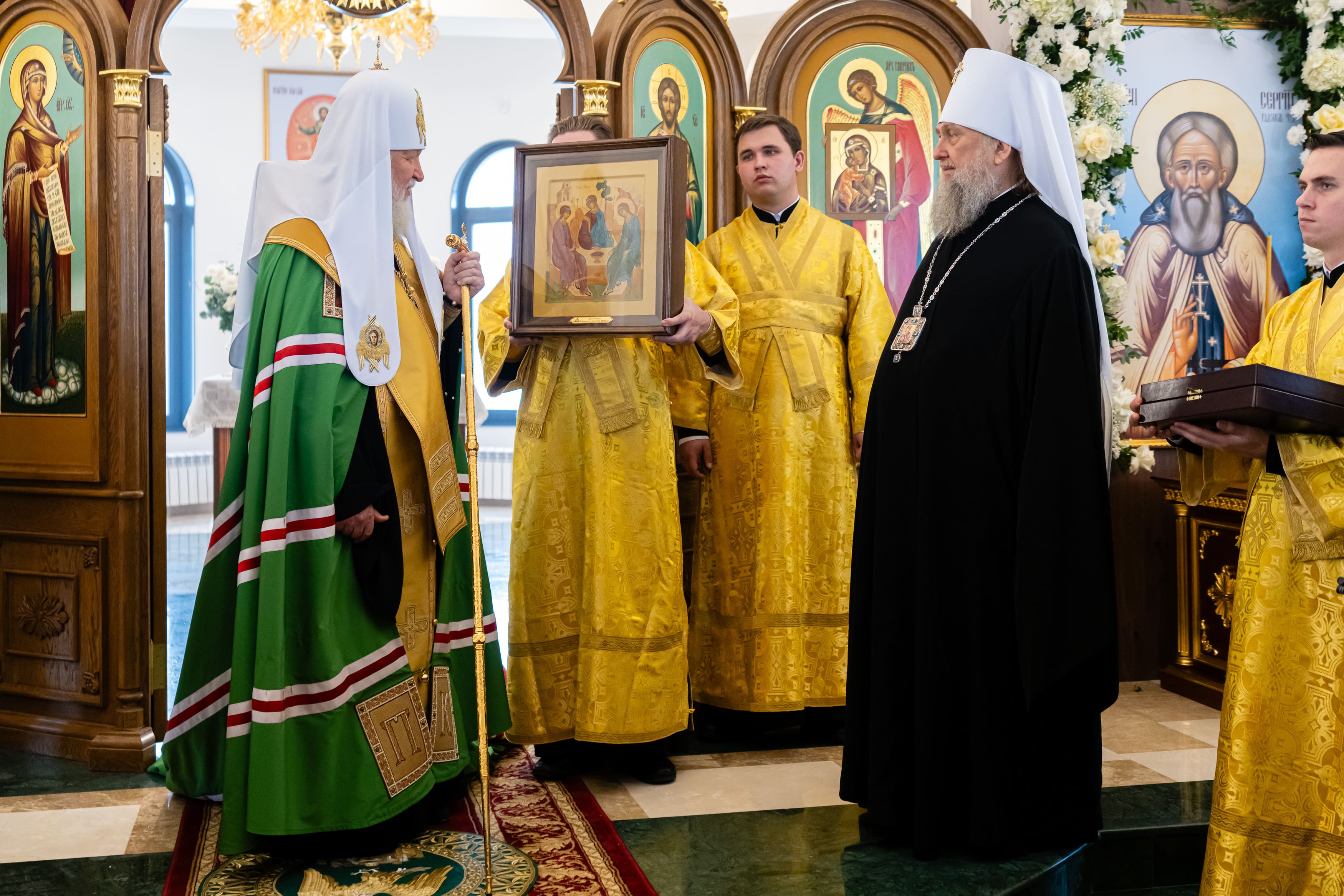 Жаңадан қасиетті етілген шіркеуге сыйлық ретінде қасиетті Андрей Рублевтің «Үшбірлік» үлгісі бойынша боялған Қасиетті Троица бейнеленген белгішені сыйға тартты.