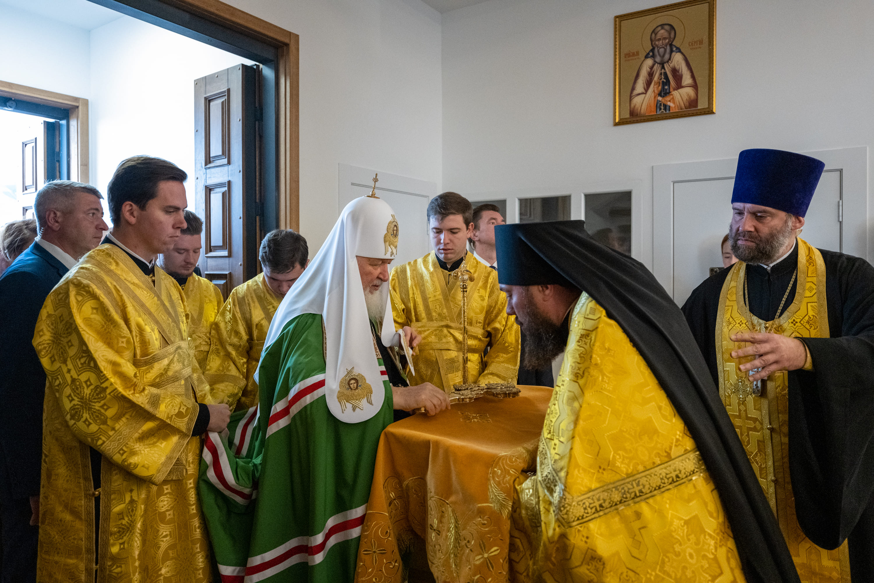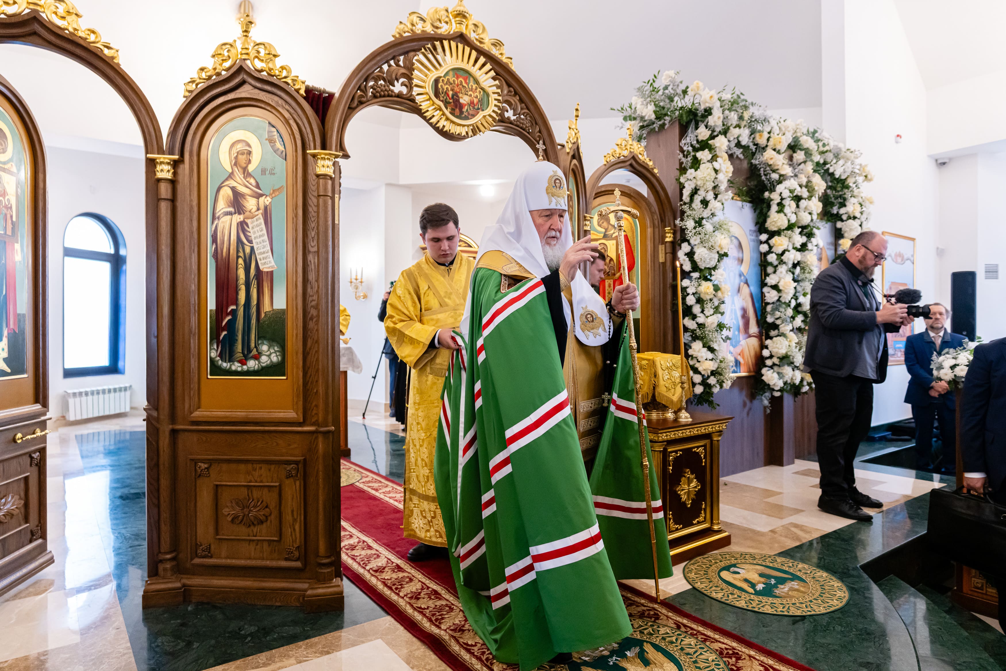 Ғибадатханаға кіре берісте Орыс Православие Шіркеуінің Жоғары Басшысын қарсы алғандар: Қазақстан Республикасындағы Орыс Православие Шіркеуінің Митрополиттік округінің басшысы Астана және Қазақстан митрополиті Александр; Қазақстан Республикасы Премьер-Министрінің бірінші орынбасары Р.В. Скляр; Қазақстан Республикасының мәдениет және ақпарат министрі А.Г.Балаева; Ресей Федерациясының Қазақстан Республикасындағы Төтенше және Өкілетті Елшісі А.Н. Бородовкин; Астана шіркеуі округінің құрметті өкілі архимандрит Сергий (Карамышев); Митрополиттік округ басшысының әкімшілік хатшылығының меңгерушісі иерей Георгий Сидоров.