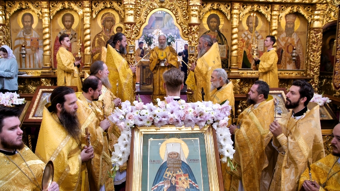 По отпусте Литургии состоялось славление священноисповеднику Николаю перед ракой с его честными мощами.