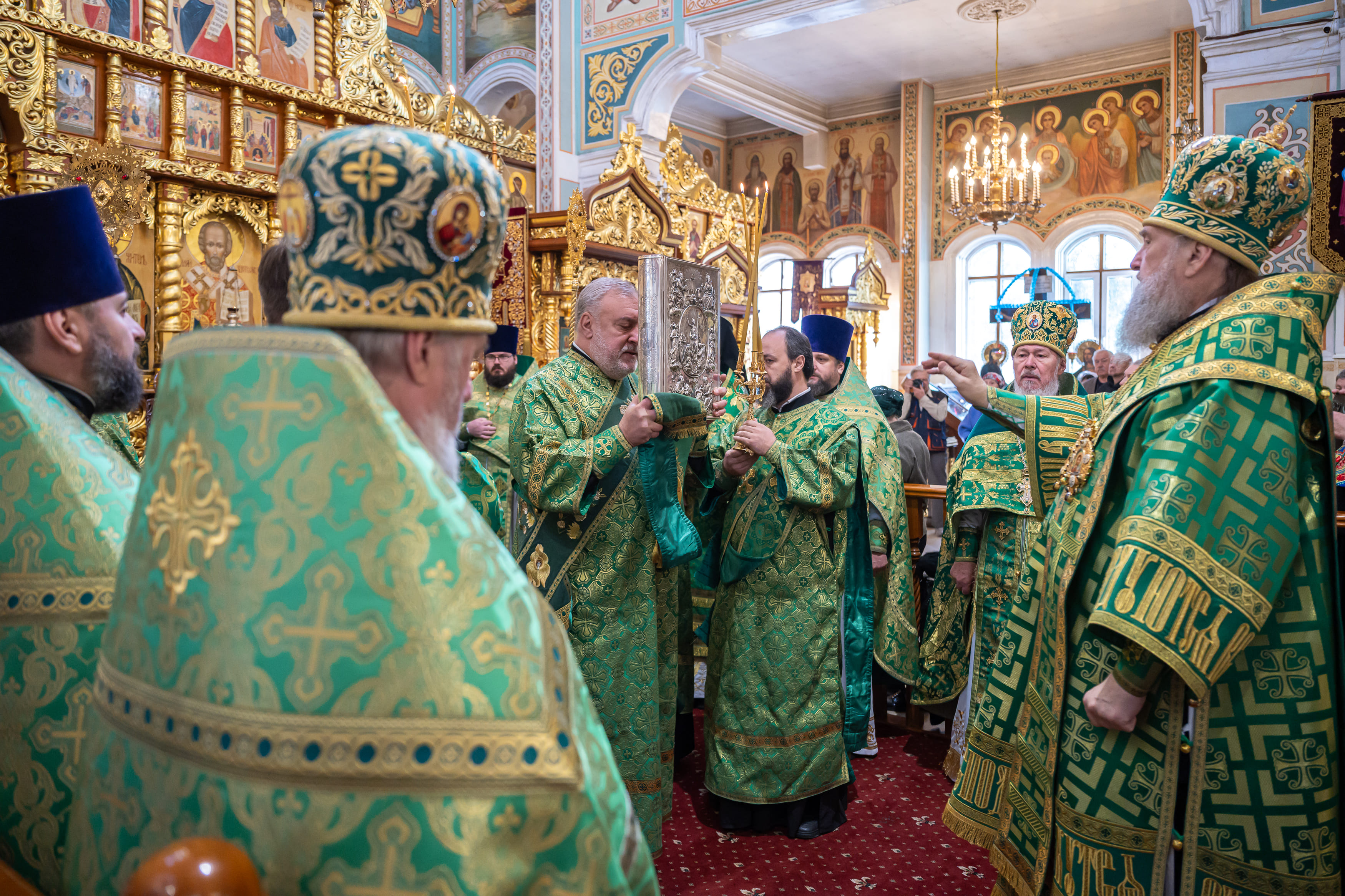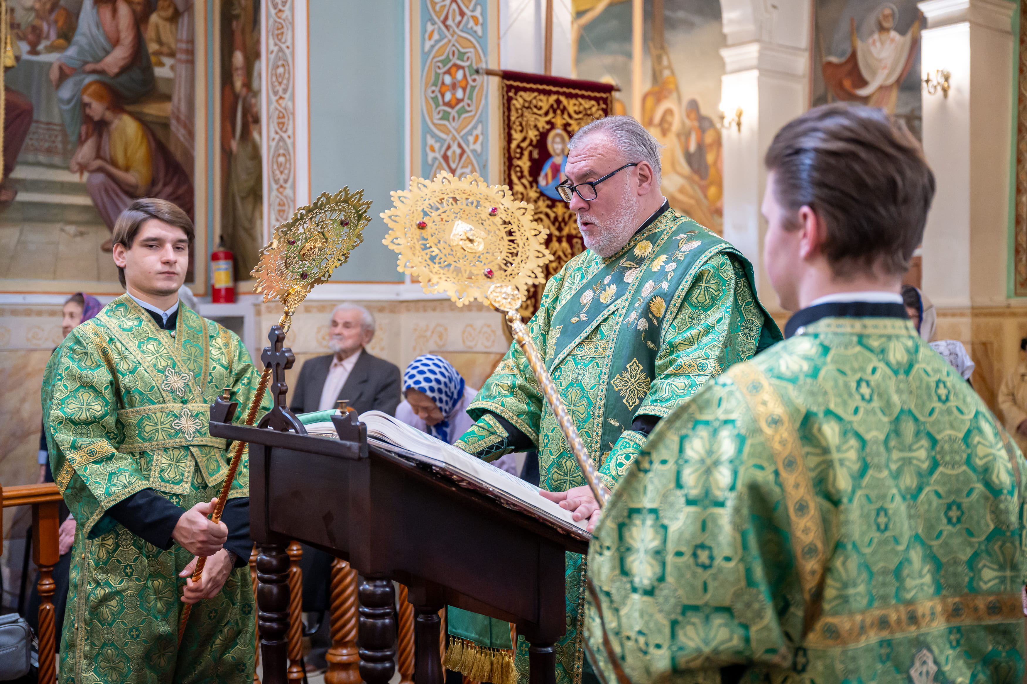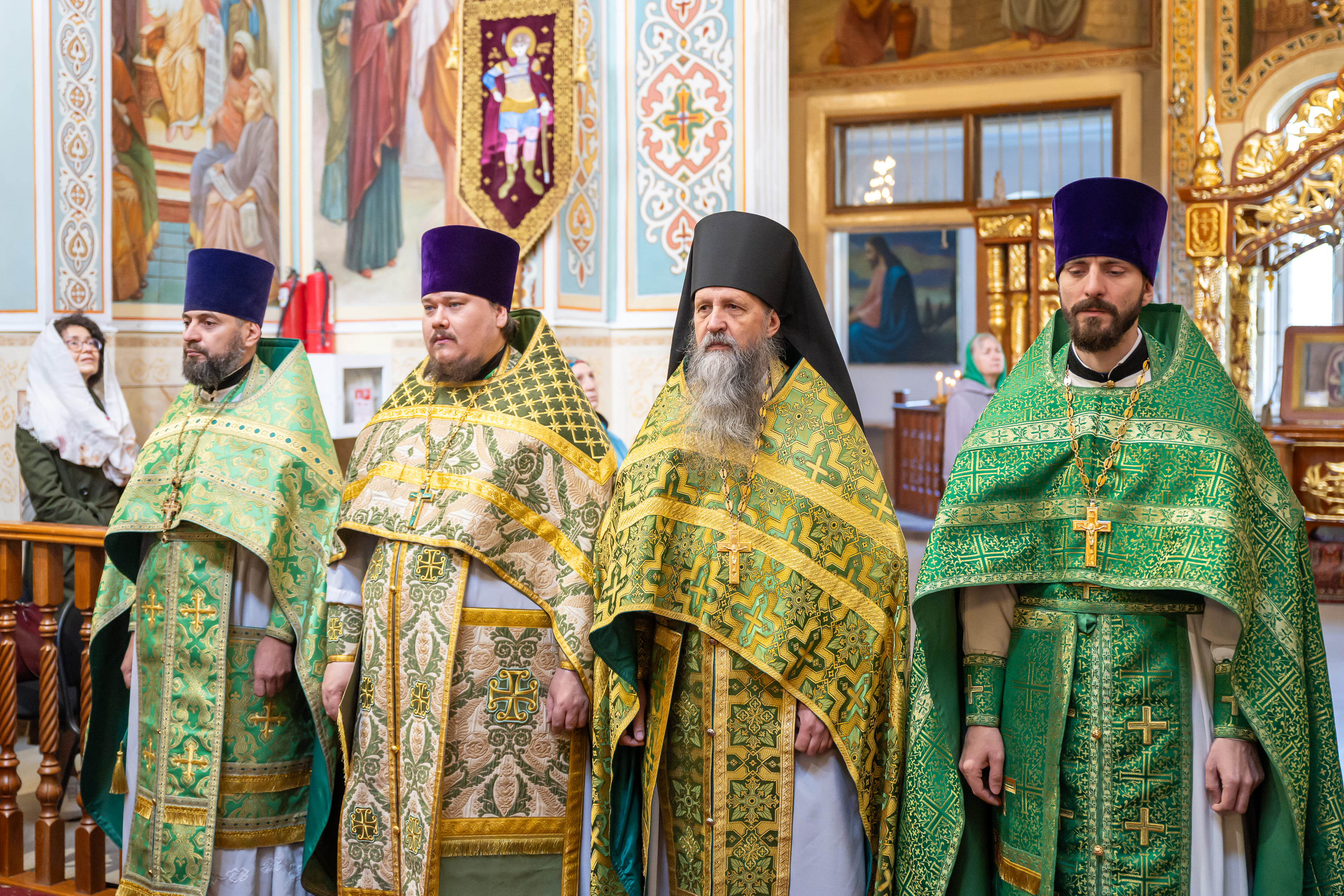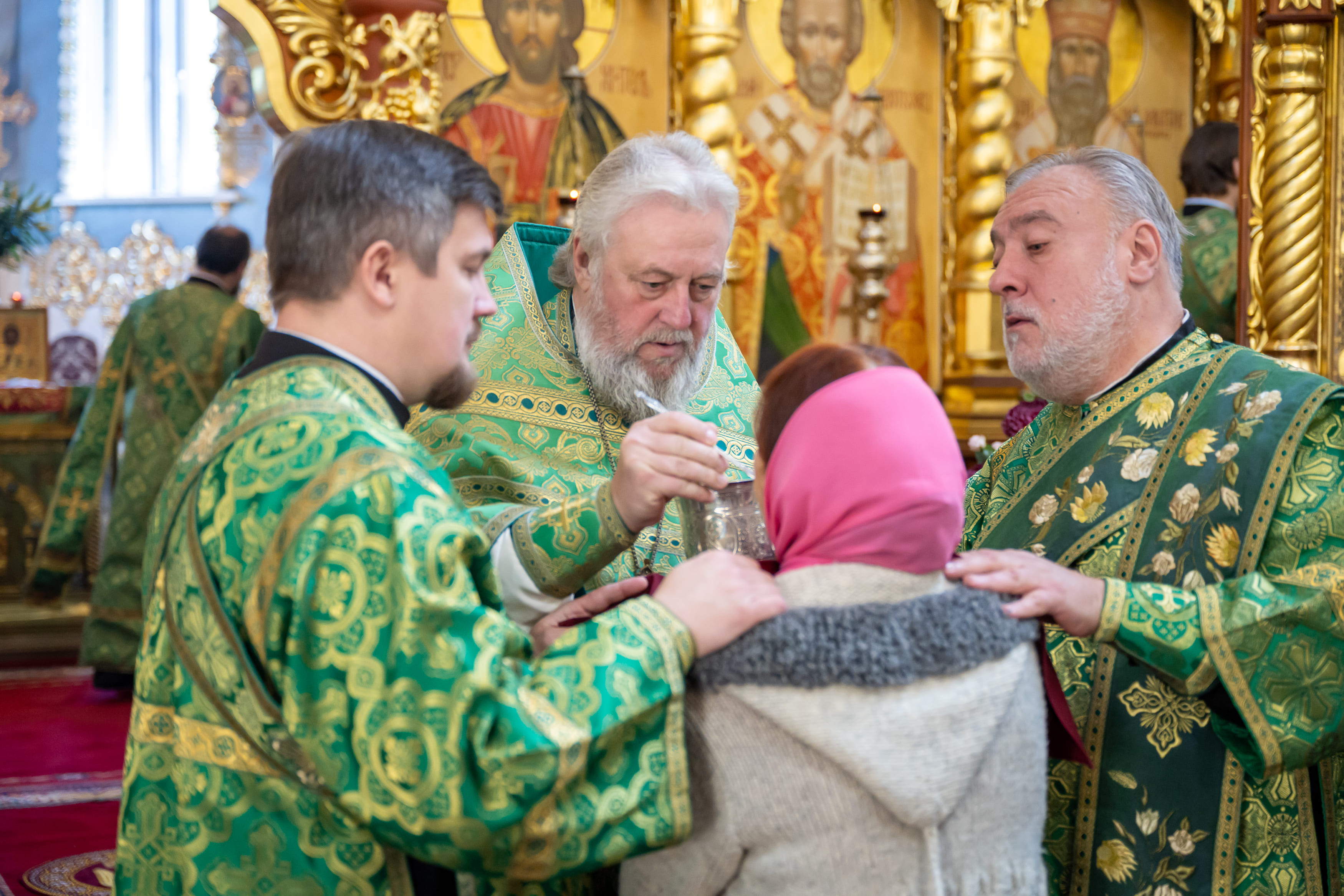 Его Высокопреосвященству сослужили: благочинный приходов Южной столицы, настоятель Никольского собора протоиерей Валерий Захаров; настоятель алма-атинского храма в честь иконы Божией Матери «Всех скорбящих Радость» протоиерей Евгений Воробьев; ключарь Никольского собора протоиерей Игорь Светличный; ключарь Вознесенского кафедрального собора, руководитель отдела по связям с общественностью Митрополичьего округа протоиерей Александр Суворов; руководитель личного секретариата митрополита иеромонах Прохор (Ендовицкий); клирик Иоанно-Богословской церкви иеромонах Геннадий (Соловьев); руководитель административного секретариата Главы Митрополичьего округа иерей Георгий Сидоров; ключарь Адриано-Наталиевского храма иерей Иоанн Коноплев; ключарь Казанского собора иерей Георгий Рублинский; диаконский чин возглавил протодиакон Николай Гринкевич.