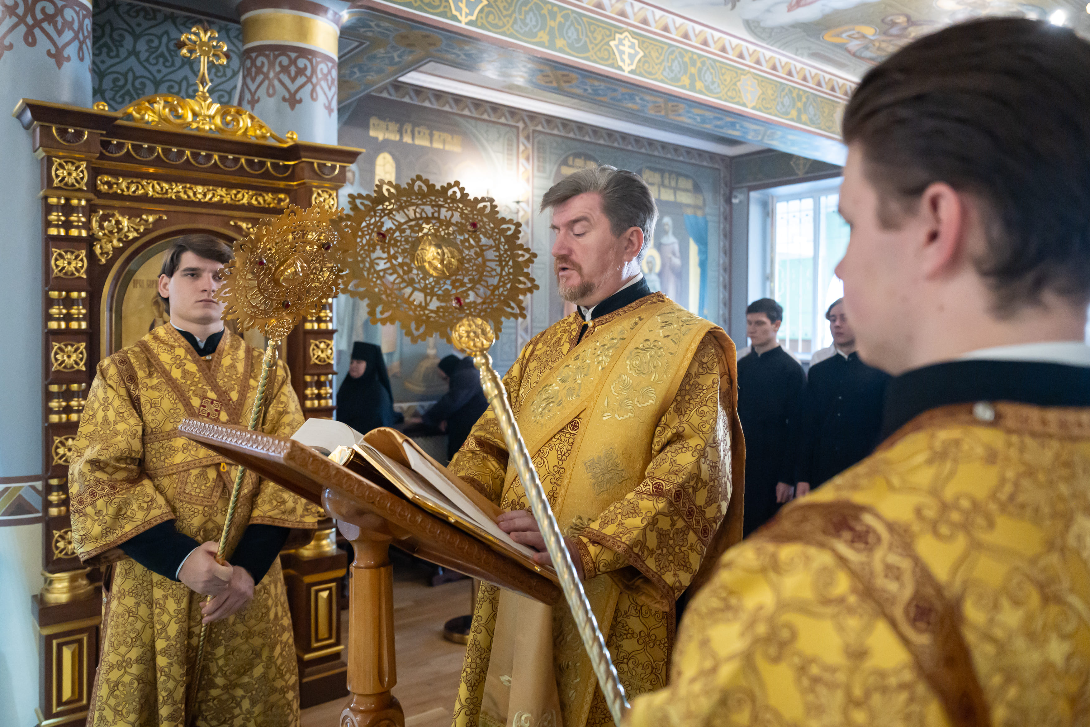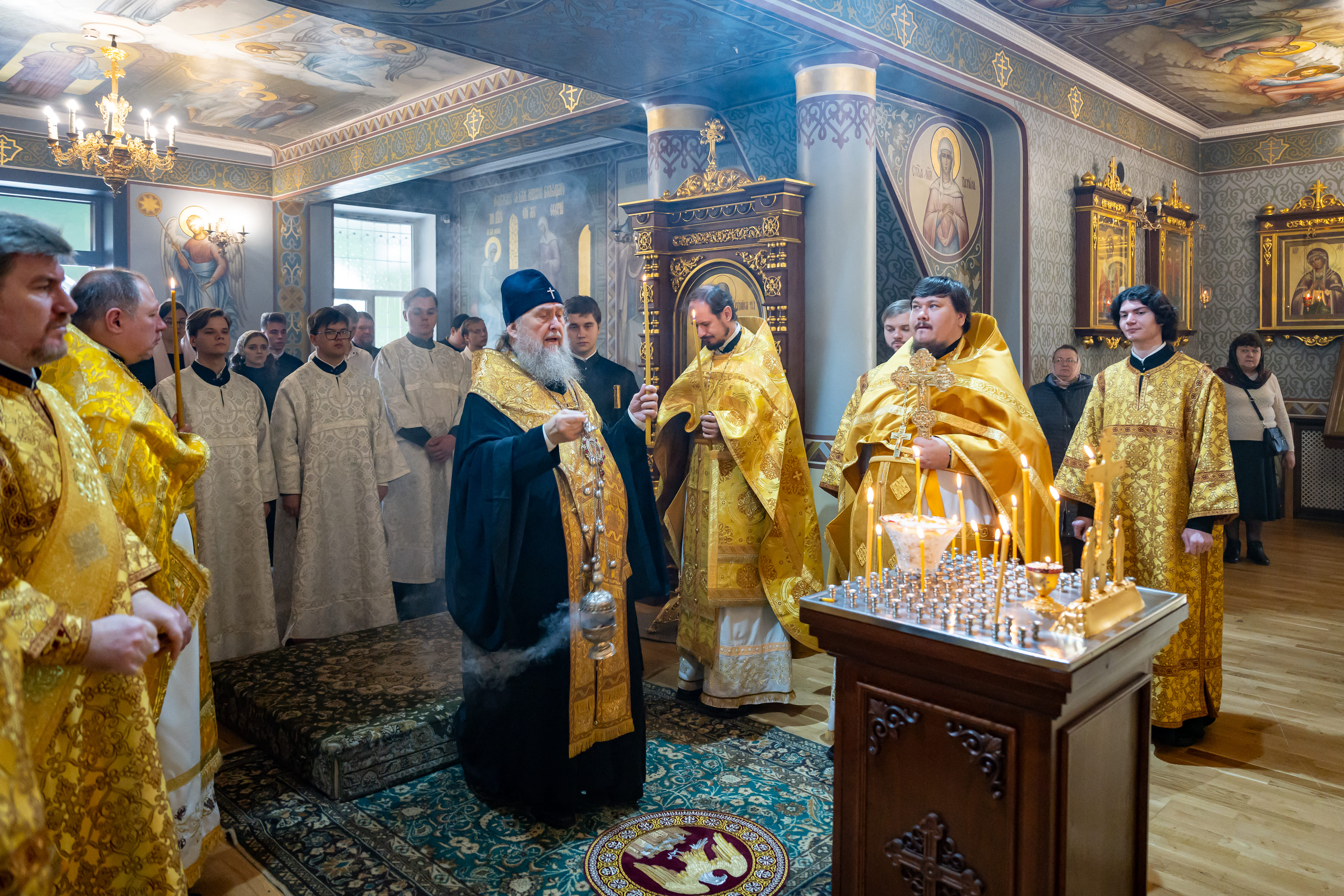 Его Высокопреосвященству сослужили: ректор Алма-Атинской духовной семинарии протоиерей Евгений Иванов; проректор по воспитательной работе иерей Иоанн Ливинский; заведующий библейско-богословской кафедрой иерей Олег Лисин; руководитель административного секретариата Главы Митрополичьего округа иерей Георгий Сидоров; руководитель службы протокола митрополита протодиакон Роман Головин; протодиакон Владимир Сыровацкий; диакон Роман Караман и диакон Илья Воробьев.