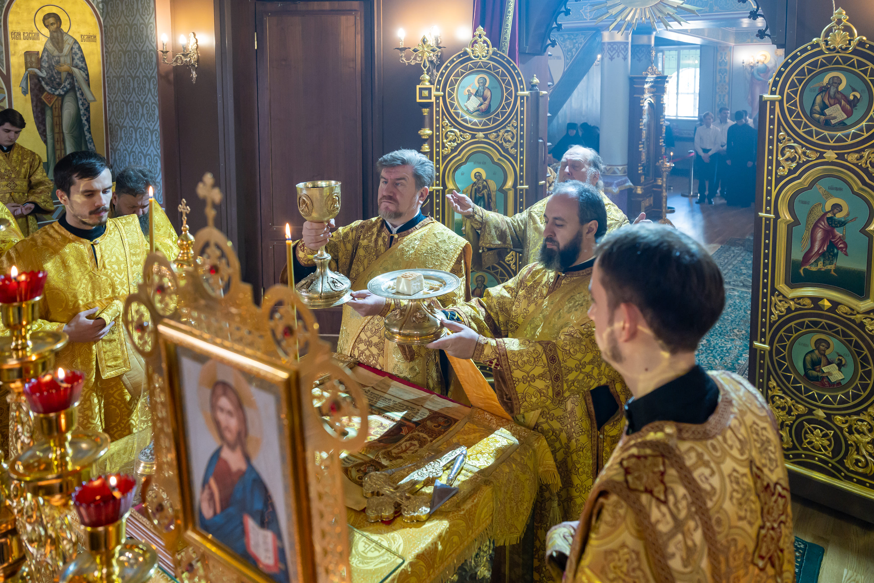 В воскресный день, отмеченный памятью великомученицы Екатерины, Глава Митрополичьего совершил Литургию в Представительстве Митрополичьего округа в Москве