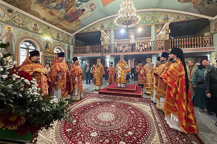 Митрополит Астанайский и Казахстанский Александр совершил Божественную Литургию в главном храме Чимкентской епархии – Никольском кафедральном соборе города Шымкента.
