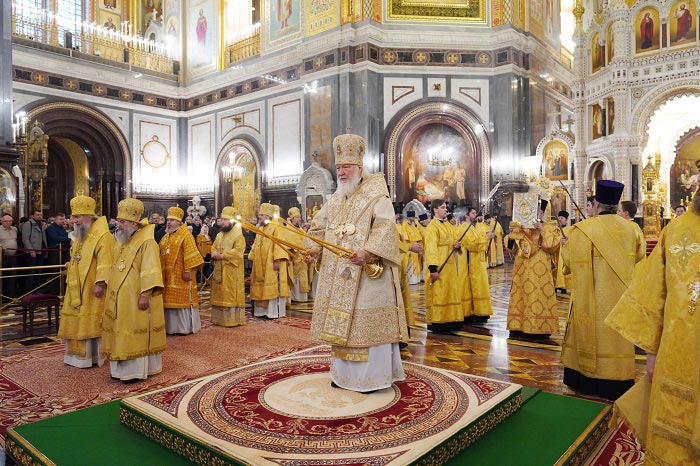 На сугубой ектении были вознесены особые прошения, Предстоятель Русской Церкви прочитал молитву о Святой Руси.