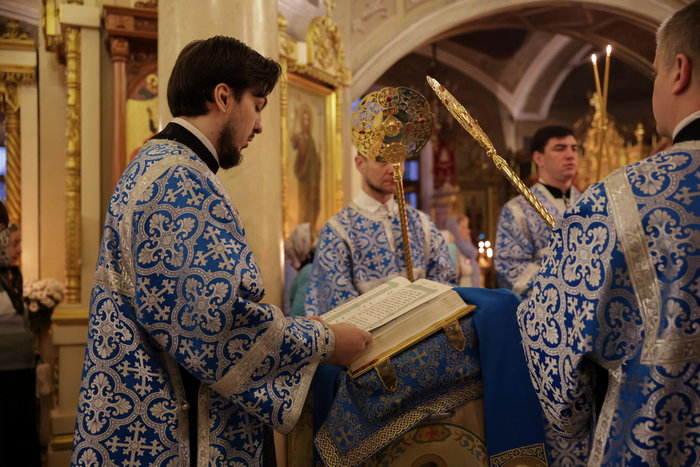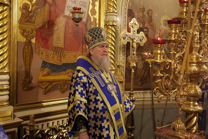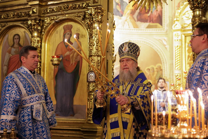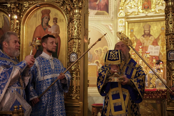 В завершение Литургии перед иконой Введения Пресвятой Богородицы во храм состоялось славление празднику, после чего владыка митрополит поздравил духовенство и верующих с двунадесятым богородичным праздником и обратился к собравшимся со словом архипастырской проповеди.