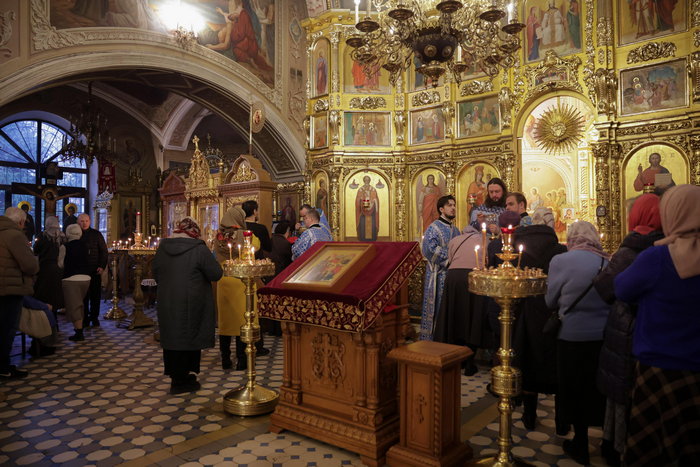 За богослужением молились: секретарь Православной Церкви Казахстана, Заслуженный деятель искусств Российской Федерации, регент хора Казахстанского Митрополичьего округа, член Патриаршего совета по развитию русского церковного пения О.Н. Овчинников; сотрудники Представительства и прихожане храма.
