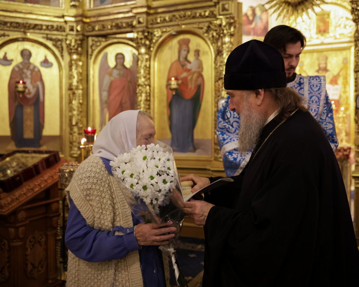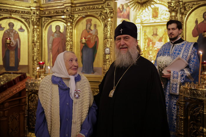 По окончании богослужения Его Высокопреосвященство вручил орден святых мучениц Веры, Надежды, Любови и Софии одной из старейших прихожанок храма В.К. Пронцевой.