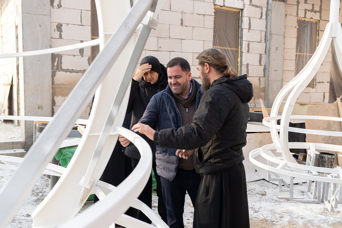 После праздничной службы президент Общественного фонда «ELEOS-MEIRIM» В.М. Капсамун ознакомился с работами по возведению кирпичного храма во имя святых бессребренников и чудотворцев Космы и Дамиана, который созидается при активной поддержке возглавляемой им организации, по благословению Главы Православной Церкви Казахстана.