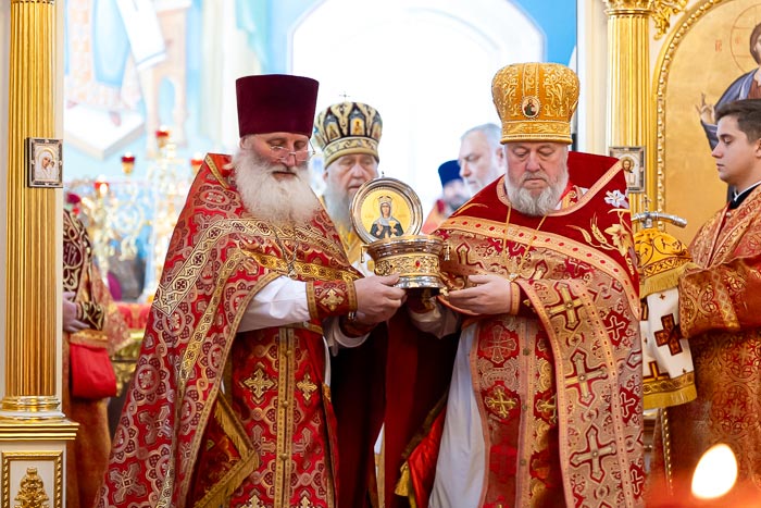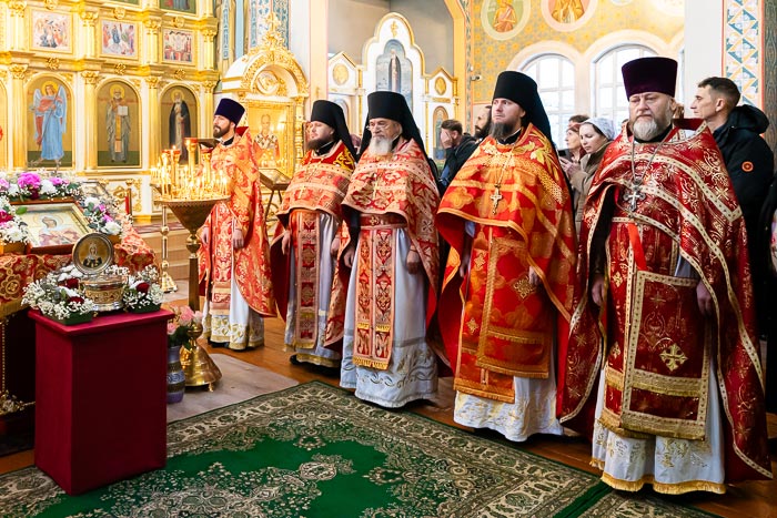 Литургия завершилась славлением перед ковчегом с мощами великомученицы Варвары.