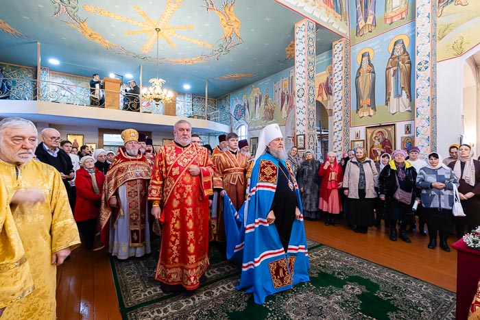 Глава Митрополичьего округа тепло поблагодарил отца настоятеля и исполняющего обязанности благочинного Талгарского церковного округа иерея Кирилла Фрейганга, благотворителей и создателей иконостаса, отметив, что благоукрашение церковных интерьеров стало замечательным подарком приходу к особым историческим датам – 30-летию освящения возрожденного храма и 40-летию возобновления приходской деятельности.