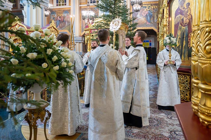 После окончания богослужения хор Митрополичьего округа под управлением Заслуженного деятеля искусств России О.Н. Овчинникова исполнил одну из самых известных в мире рождественских песен – «Ночь тиха над Палестиной».