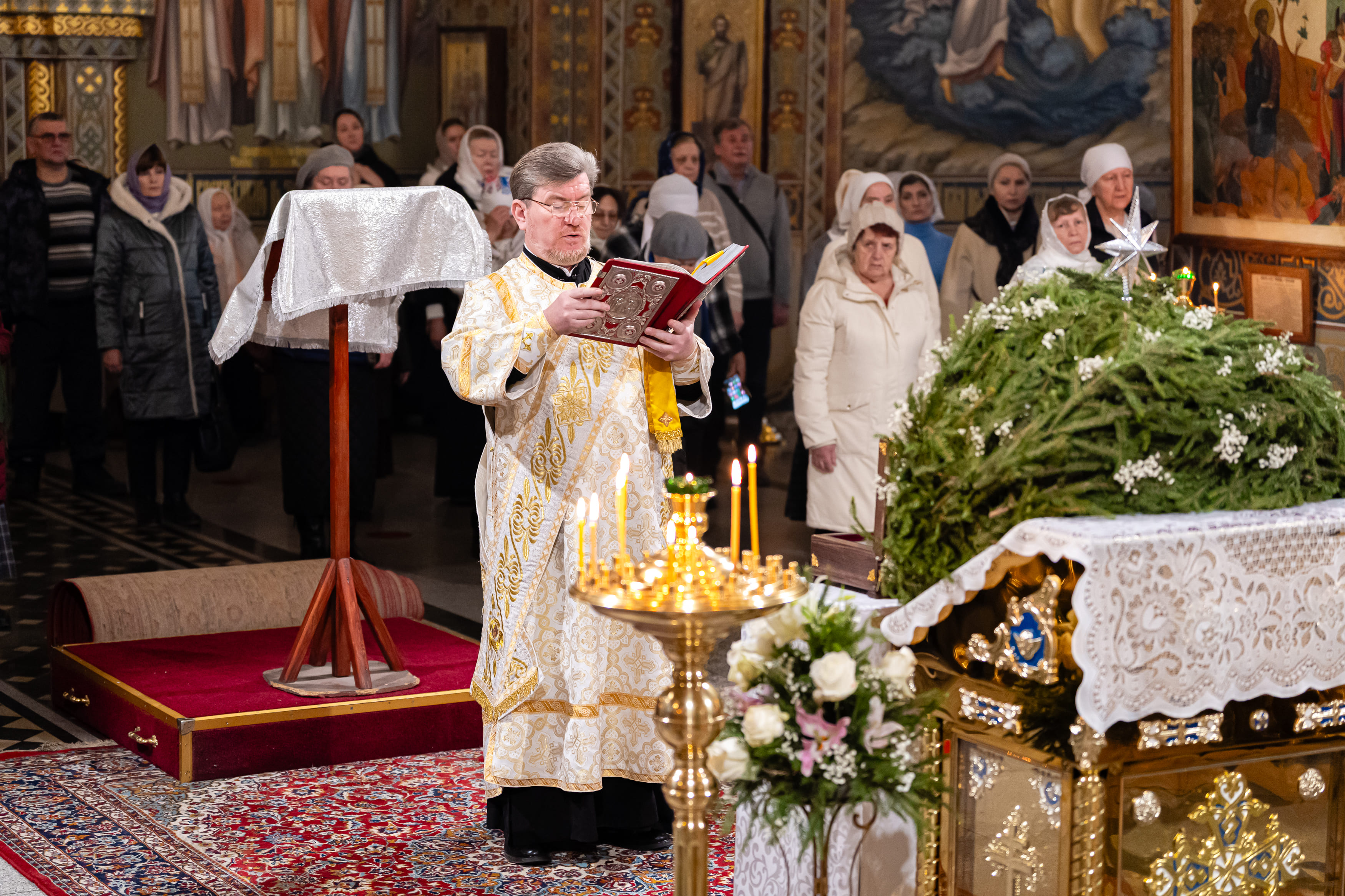 По запричастном стихе иерей Георгий Сидоров огласил Рождественское послание митрополита Астанайского и Казахстанского Александра.