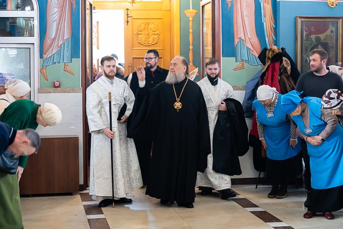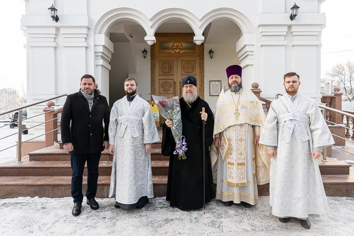 Главе Митрополичьего округа сослужили: благочинный храмов Алма-Аты, настоятель Никольского собора протоиерей Валерий Захаров, настоятель Богоявленского храма протоиерей Валерий Шаврин, руководитель административного секретариата Главы Митрополичьего округа иерей Георгий Сидоров, заместитель председателя комиссии по работе с казачеством Казахстанского Митрополичьего округа иерей Евгений Козлов, ключарь Казанского собора Алма-Аты иерей Георгий Рублинский, ключарь Адриано-Наталиевского храма иерей Иоанн Коноплев; протодиакон Николай Гринкевич, руководитель службы протокола митрополита протодиакон Роман Головин, протодиакон Владимир Сыровацкий, диакон Георгий Ткаченко.