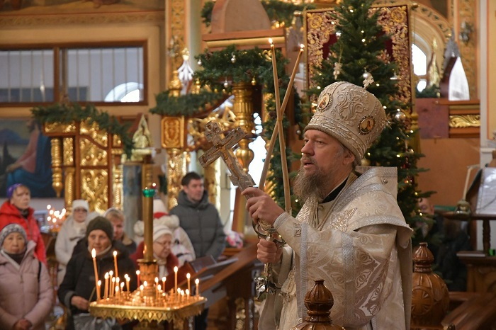В ночь с 18 на 19 января викарий Астанайской епархии епископ Талгарский Вениамин совершил Божественную Литургию в Константино-Еленинском кафедральном соборе города Костаная