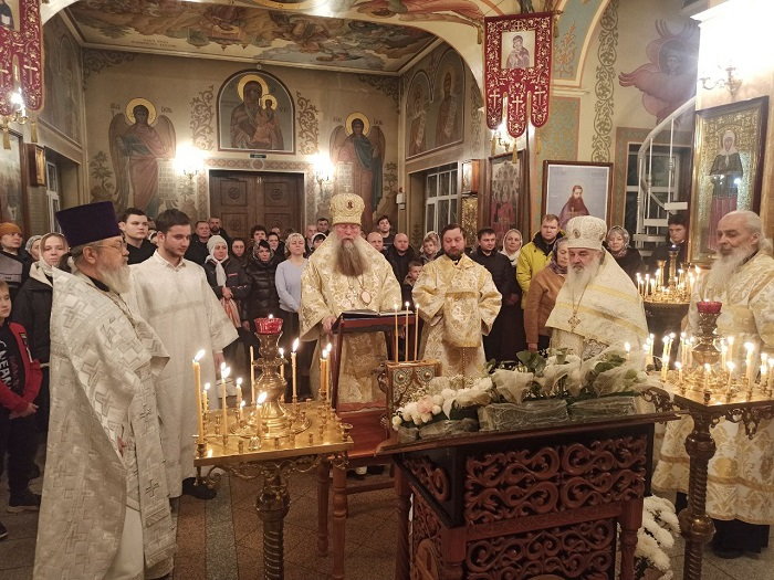 Накануне вечером иерарх совершил в Никольском соборе всенощное бдение с литией.