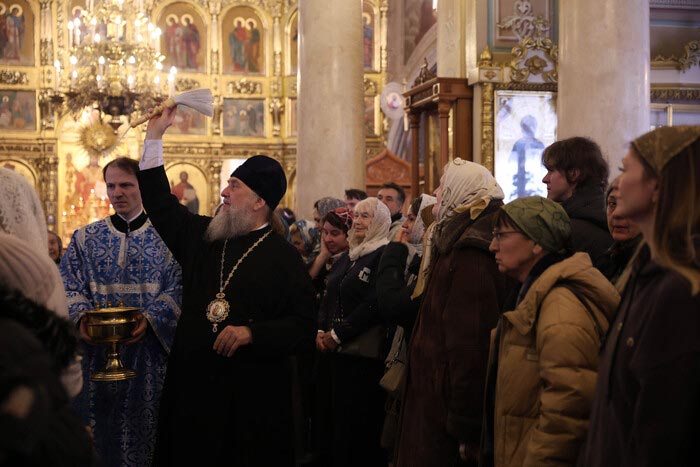 Митрополит Александр окропил молящихся святой водой, после чего огласил Обращение Святейшего Патриарха Московского и всея Руси Кирилла по случаю празднования Дня православной молодежи.