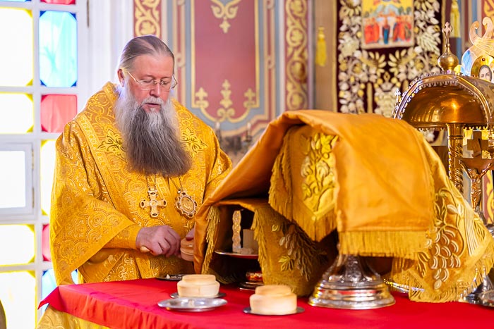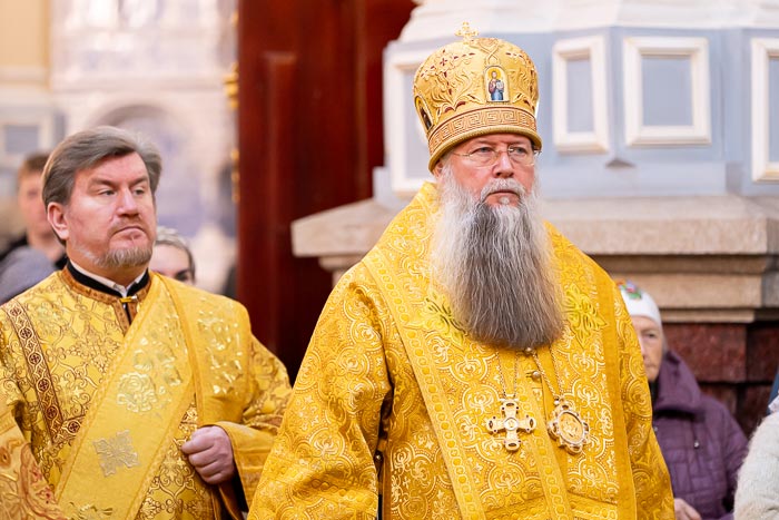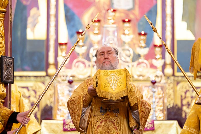 Его Высокопреосвященство окропил молящихся святой водой.
