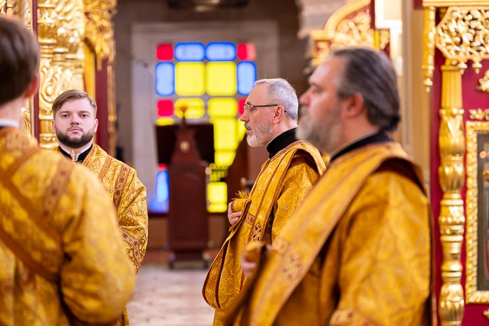 Главе Православной Церкви Казахстана сослужили: управляющий делами Православной Церкви Казахстана епископ Каскеленский Геннадий и викарий Астанайской епархии епископ Талдыкорганский Клавдиан; благочинный приходов Южной столицы, настоятель Никольского собора протоиерей Валерий Захаров; архимандрит Иосиф (Еременко), ключарь Вознесенского кафедрального собора, руководитель отдела Митрополичьего округа по связям с общественностью протоиерей Александр Суворов; ключарь Христорождественского собора протоиерей Александр Гайченя, член Патриаршей комиссии по вопросам физической культуры и спорта игумен Филипп (Моисеев), клирик Вознесенского кафедрального собора Южной столицы протоиерей Александр Иевлев, игумен Онисим (Тульников), руководитель личного секретариата митрополита иеромонах Прохор (Ендовицкий), руководитель административного секретариата Главы Митрополичьего округа иерей Георгий Сидоров, ключарь Казанского собора Алма-Аты, руководитель молодежного отдела Митрополичьего округа иерей Георгий Рублинский, руководитель отдела культуры Митрополичьего округа иерей Богдан Бойко; протодиакон Николай Гринкевич, руководитель службы протокола митрополита протодиакон Роман Головин, протодиакон Владимир Сыровацкий, диакон Виталий Быструшкин, диакон Александр Пивень, диакон Георгий Ткаченко, диакон Даниил Пасюк.