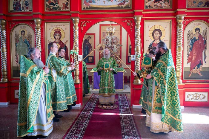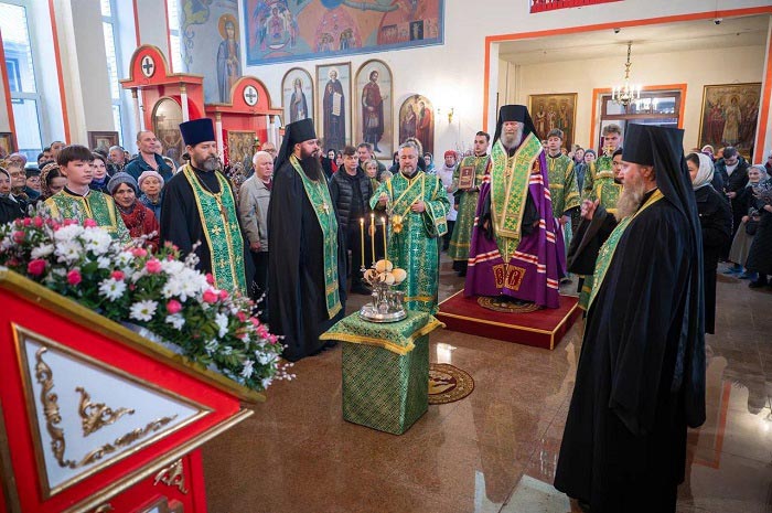 Иерарху сослужили: архимандрит Гавриил (Тутберидзе), протоиерей Владимир Глухих, иерей Николай Матлашов, иеродиакон Вениамин (Вдовин), диакон Рустик Якупов.