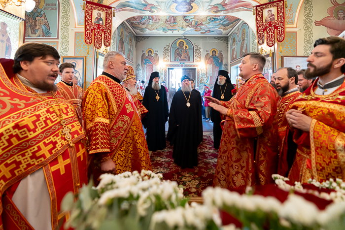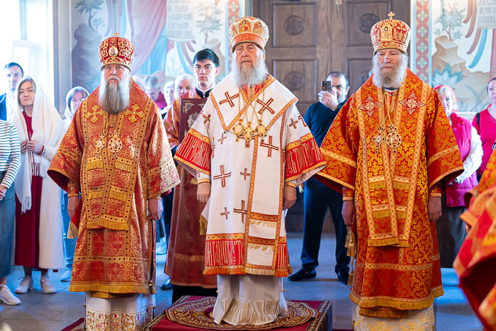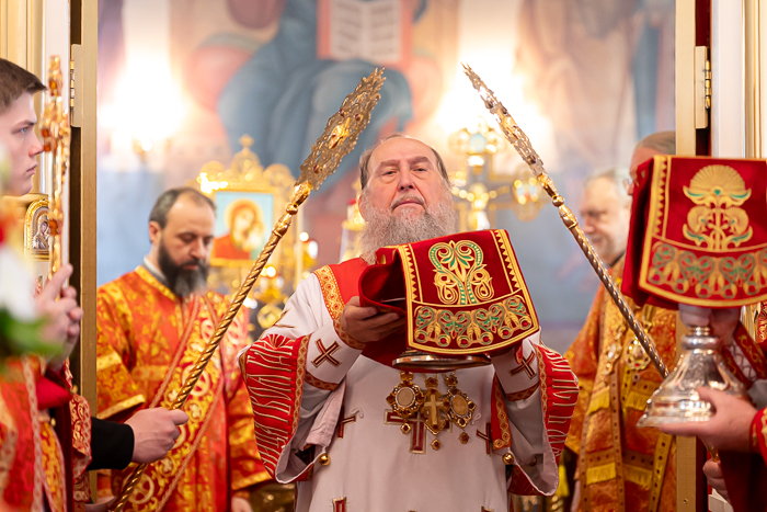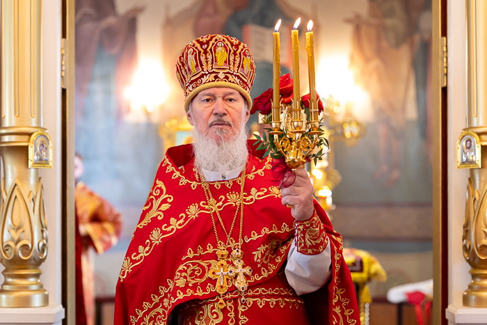 В завершение Литургии состоялось славление светлому Христову Воскресению, после чего архипастырь произнес возглас «Христос воскресе!» на разных языках – древних и современных.