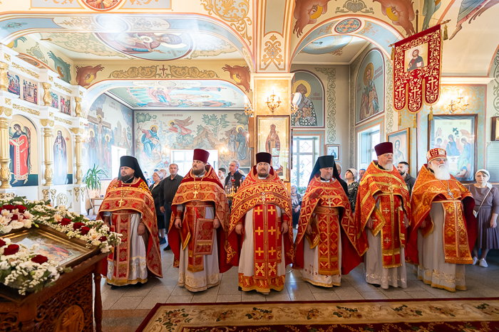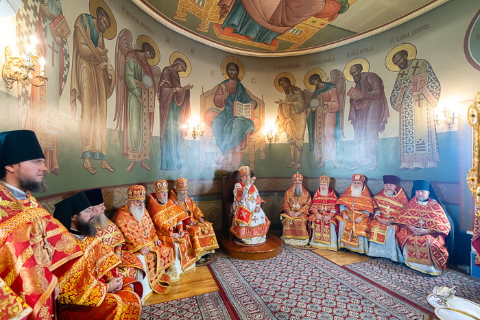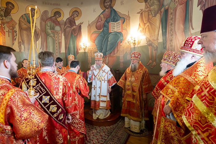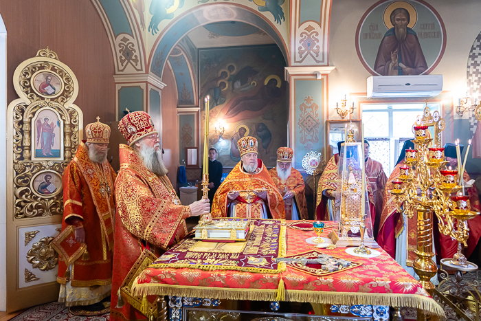 Предстоятелю Православной Церкви Казахстана сослужили: викарии Астанайской епархии – епископ Талдыкорганский Клавдиан и епископ Талгарский Вениамин; благочинный храмов Южной столицы, настоятель Никольского собора протоиерей Валерий Захаров; настоятель храма в честь иконы Божией Матери «Всех скорбящих Радость» протоиерей Евгений Воробьев; архимандрит Иосиф (Еременко); архимандрит Гавриил (Тутберидзе); настоятель Иоанно-Предтеченской церкви поселка Гульдала протоиерей Георгий Харлов; настоятель Алексеевской церкви поселка Байтерек протоиерей Анатолий Бойко; игумен Онисим (Тульников); личный секретарь Главы Митрополичьего округа иеромонах Димитрий (Байдек); руководитель секретариата митрополита иеромонах Прохор (Ендовицкий); руководитель административного секретариата Главы Митрополичьего округа иерей Георгий Сидоров; настоятель Александро-Невской церкви села Саймасай (Александровка) иерей Роман Клюев; клирик Алексеевского храма поселка Байтерек иеромонах Алексий (Самосенков); исполняющий обязанности благочинного Талгарского церковного округа, настоятель Никольского храма города Талгар иерей Кирилл Фрейганг; ключарь Казанского собора Алма-Аты иерей Георгий Рублинский; протодиакон Николай Гринкевич; руководитель службы протокола митрополита протодиакон Роман Головин; протодиакон Владимир Сыровацкий; диакон Александр Пивень; диакон Георгий Ткаченко; диакон Даниил Пасюк.