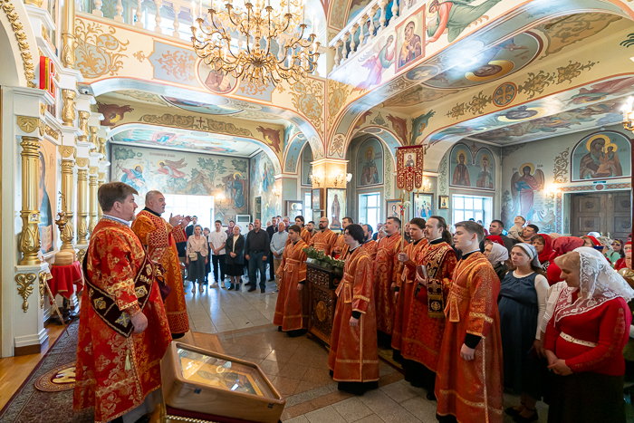 По запричастном стихе иерей Георгий Сидоров огласил Пасхальное послание Предстоятеля Православной Церкви Казахстана.