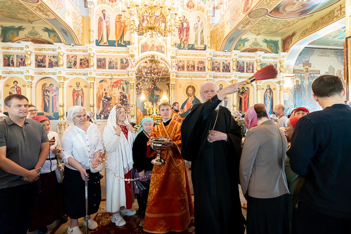 Митрополит Александр окропил верующих святой водой и обратился к собравшимся со словом назидания.