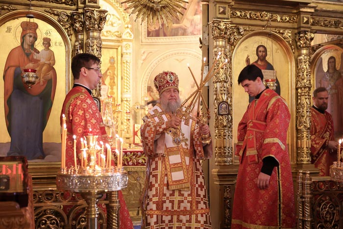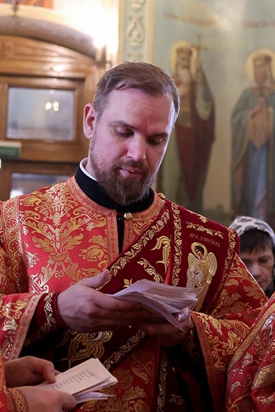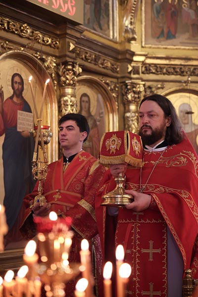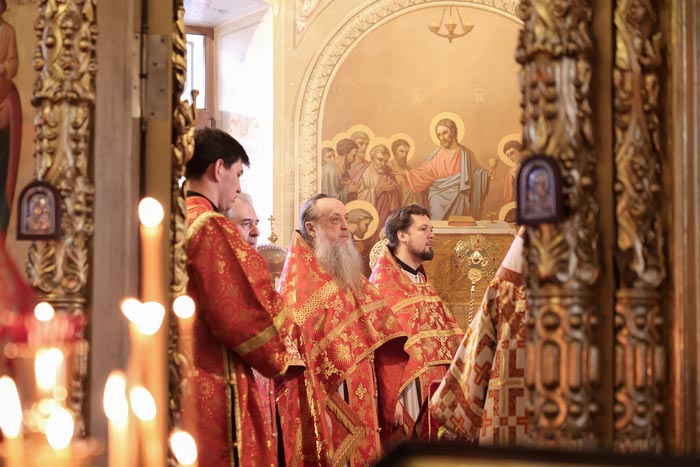 Его Высокопреосвященству сослужили: проректор Алма-Атинской духовной семинарии, кандидат богословия, доктор медицинских наук, профессор игумен Агафангел (Гагуа); ключарь храма святых мучениц Веры, Надежды, Любови и матери их Софии иеромонах Антоний (Дробязко), клирики подворья, заведующий заочным отделением Алма-Атинской духовной семинарии иерей Даниил Бобылев, диакон Анатолий Леденев, диакон Роман Фролов.
