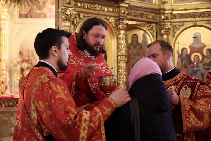 За Литургией молились: заместитель руководителя Секретариата Заместителя Председателя Правительства Российской Федерации Н.В. Паршикова; ктиторы подворья и прихожане храма.