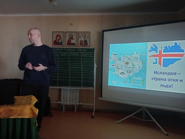 Перед началом интеллектуального состязания сотрудник Центрально-Азиатского института экологических исследований Д.В. Уваров рассказал собравшимся об Исландии – островном государстве на западе Северной Европы. Данил Владимирович представил сведения о религиозных традициях, конфессиональном составе и особенностях духовной жизни страны.